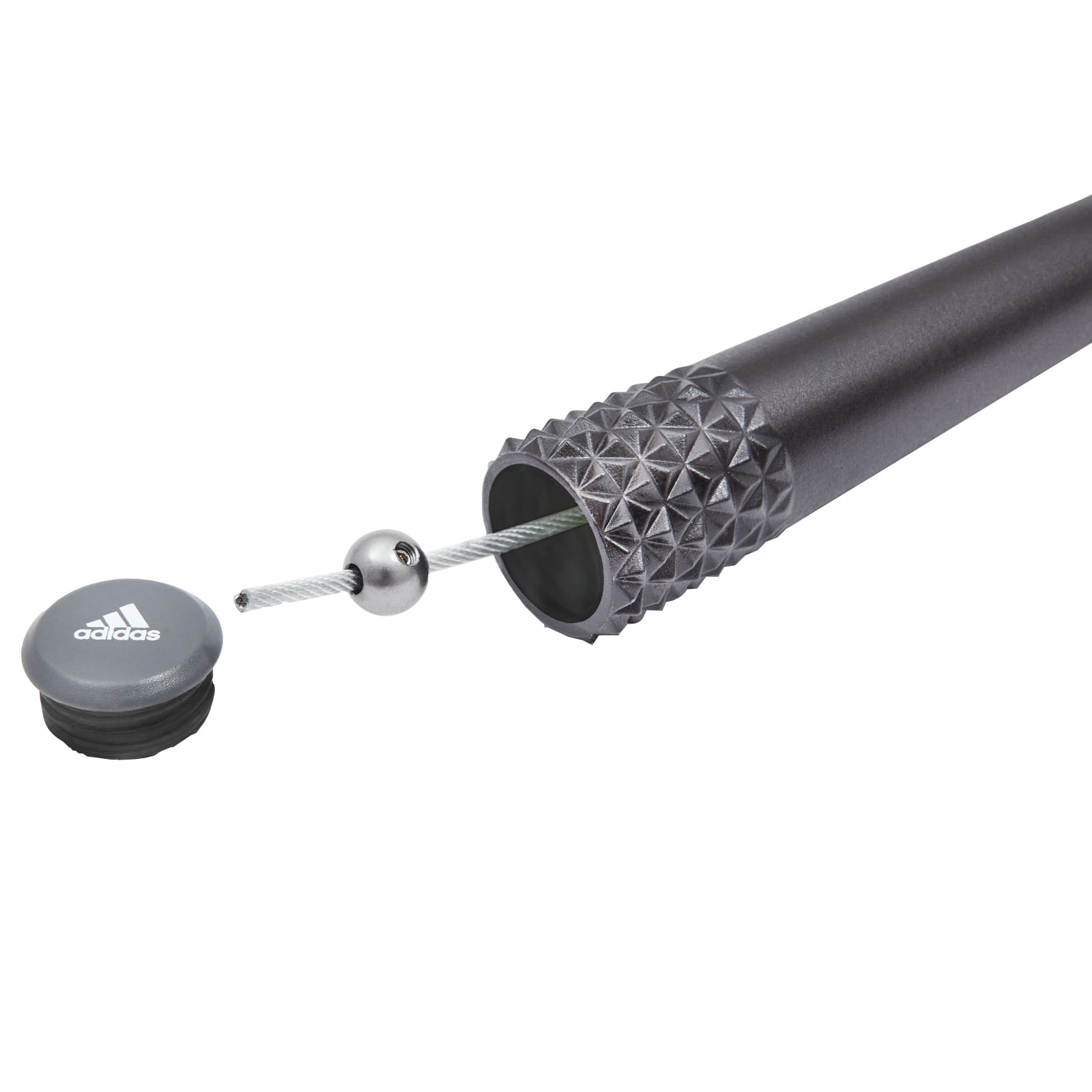 Skakanka marki adidas idealnie przyda się w treningu rozwijającym wytrzymałość cardio, koordynację a także podczas rozgrzewki. Stalowa linka pokryta została cienką gumą dla zapewnienia maksymalnej prędkości. Dzięki temu jest odpowiednia zarówno do pojedynczych, podwójnych i potrójnych obrotów. Ten wytrzymały materiał sprawia, że skakanka sprawdzi się w przypadku długotrwałego użytkowania, pozostając bez oznak zużycia. Tego typu skakanki są często wykorzystywane przez profesjonalistów w konkursach sportowych i zaspokajają wymogi niezbędne do treningów o wzmożonej intensywności.