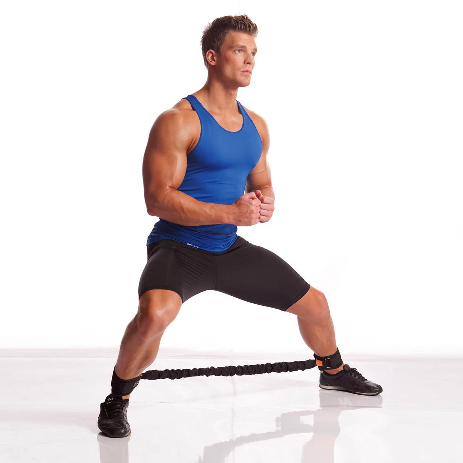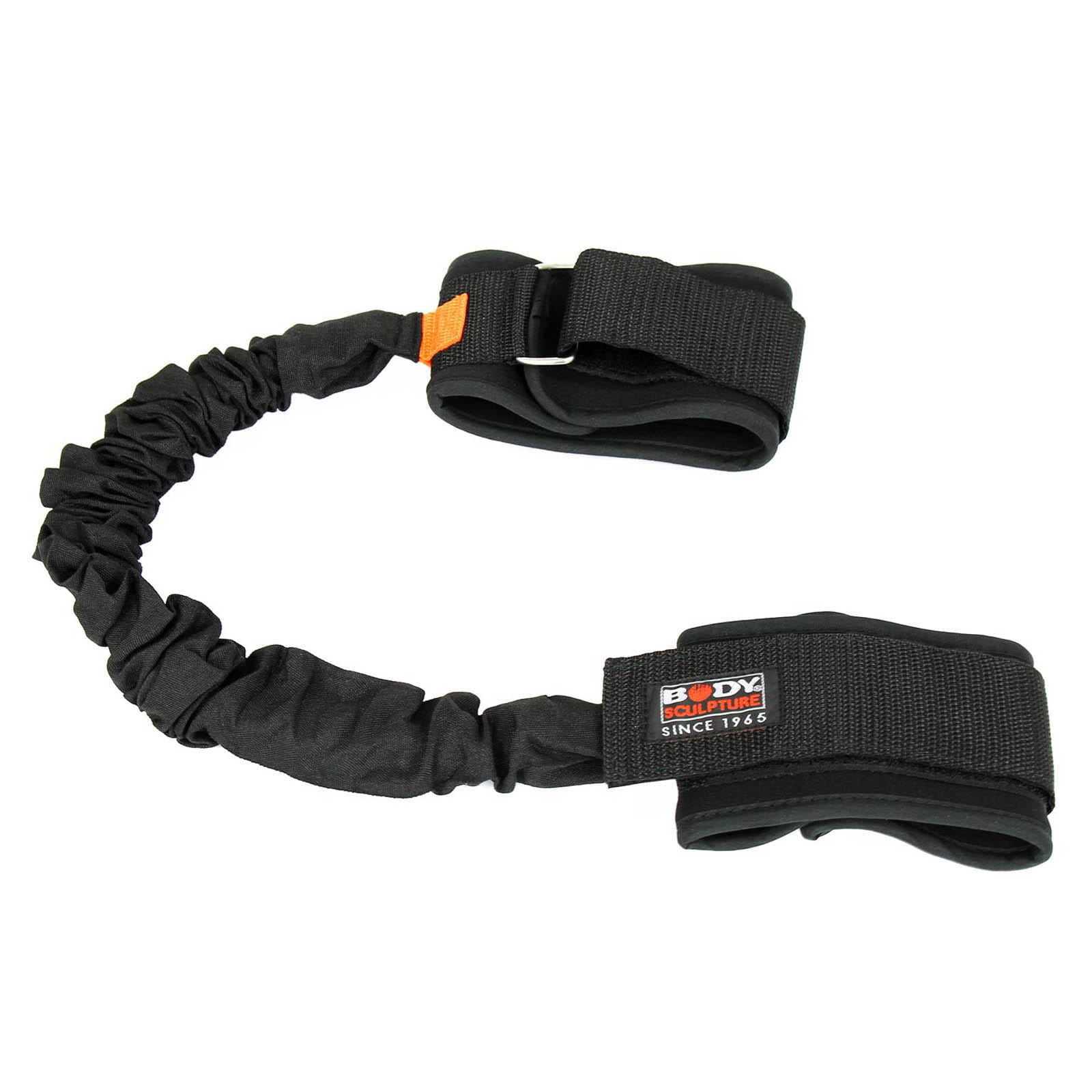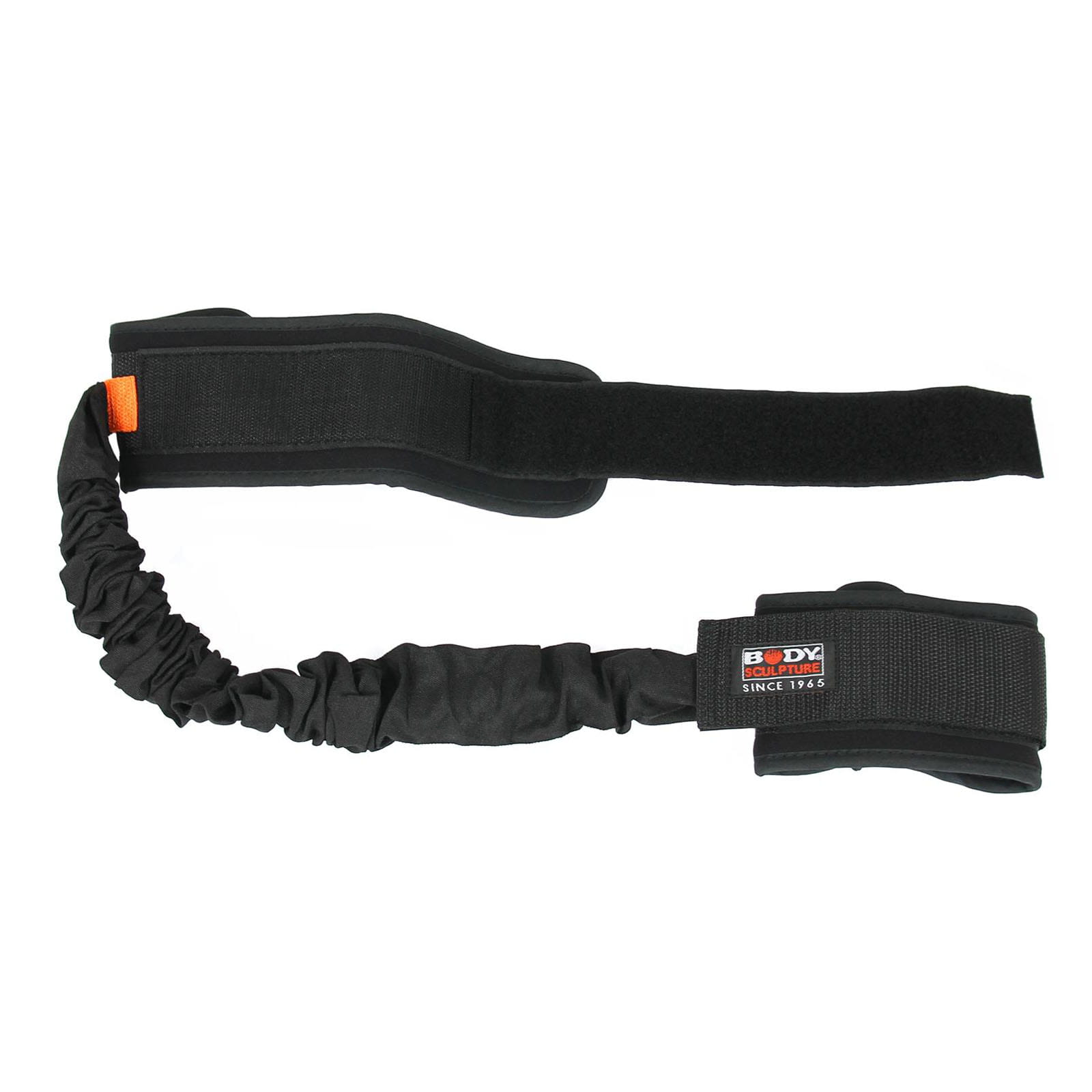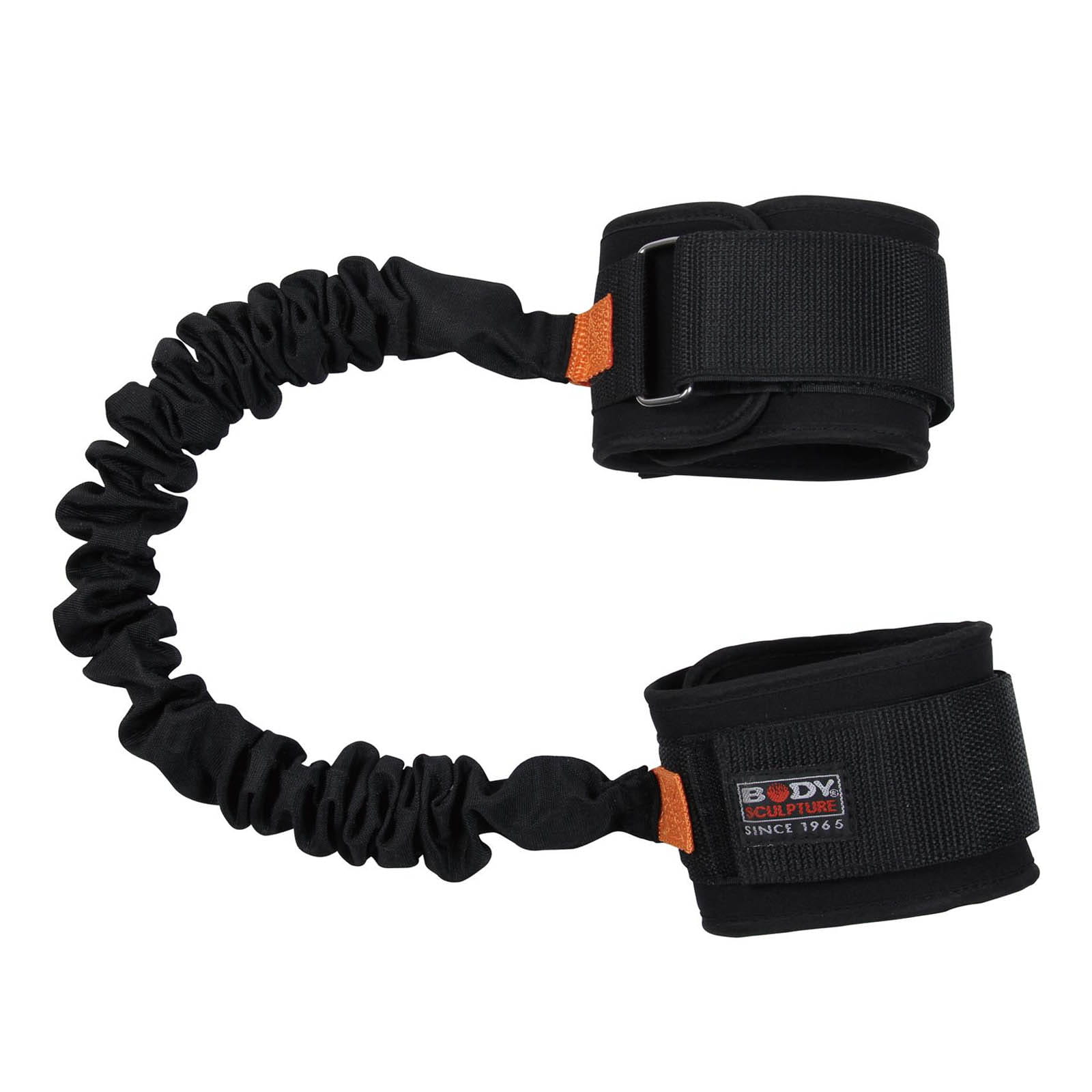 Boczny (poziomy) rezystor prędkości BB 2340 marki Body Sculpture używany jest głównie w treningu szybkości, przyspieszenia, zwinności i koordynacji. Ćwiczenia z rezystorem wzmacniają mięśnie nóg, zwiększają stabilność stawów i zakres ruchów, oraz maksymalizują ogólną sprawność ruchową. Wyposażony jest w szeroki, regulowany mankiet umożliwiający idealne jego dopasowanie do nogi użytkownika. Dzięki temu jest odpowiedni dla każdego użytkownika, bez względu na jego posturę. Rezystor wykonany został z wytrzymałych tworzyw, co sprawia, że jest odporny na rozciąganie, ścieranie i uszkodzenia. Wewnętrzna guma dodatkowo zabezpieczona nylonową osłoną, która zabezpiecza przed uszkodzeniami i gwarantuje bezpieczeństwo użytkowania – w razie pęknięcia nie zrani użytkownika. Osłona pozwala na większy naciąg gumy, co przekłada się na możliwość uzyskania lepszych wyników treningu siłowego.