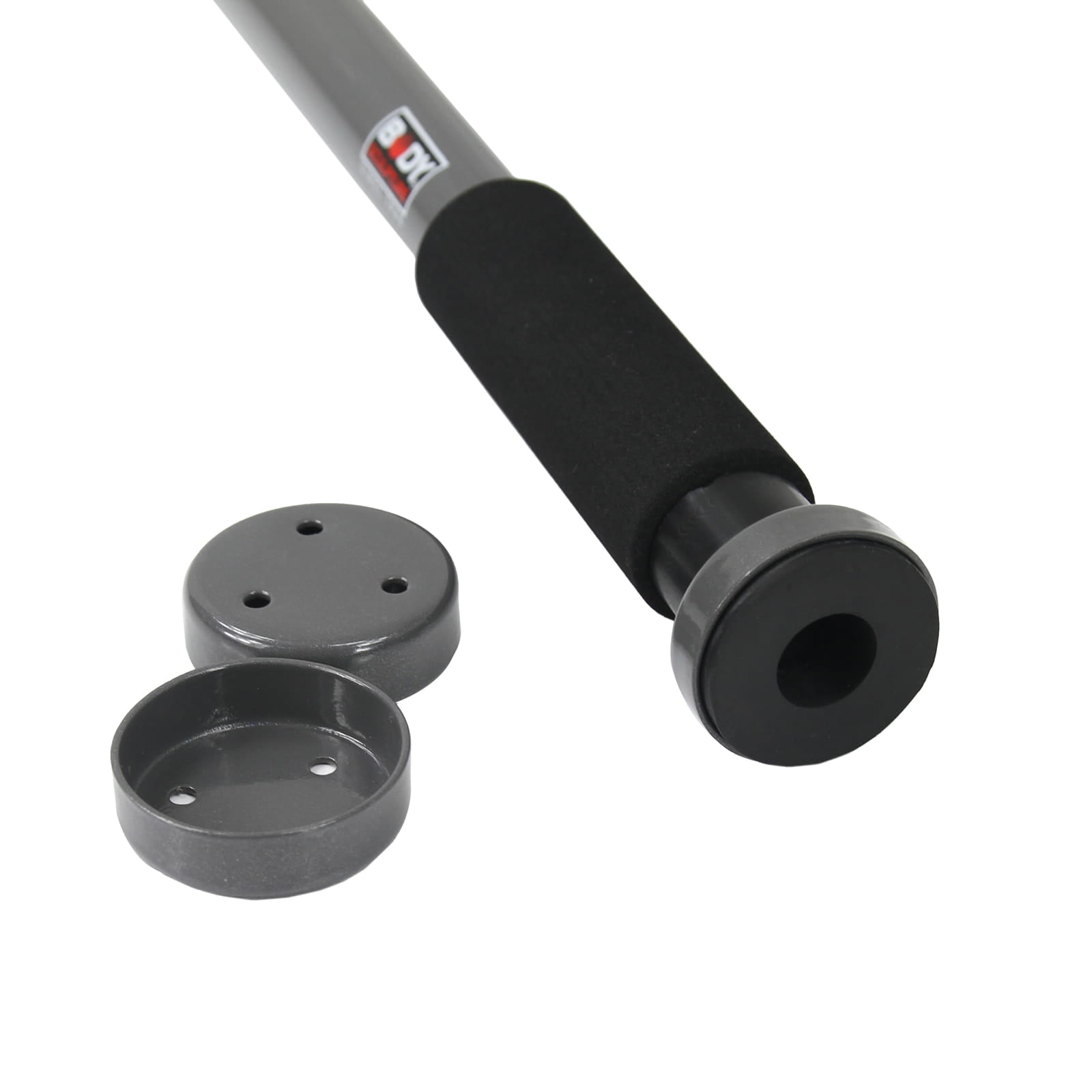 Drążek BB 262L marki Body Sculpture przeznaczony do zamontowania w futrynie drzwi umożliwia zarówno wykonywanie ćwiczeń w zwisie jak i brzuszków. Wspomaga rzeźbienie mięśni ramion, brzucha oraz grzbietu. Drążek wykonany jest z wysokiej jakości chromowanej stali. Uchwyty z miękkiej gąbki sprawiają, że dłonie nie ślizgają się, co umożliwia komfortowe wykonywanie ćwiczeń. Regulowana długość pozwala na bezpieczne zamontowanie drążka w futrynach o szerokości od 84 do 120 cm. Dzięki temu można umieścić go w dowolnie wybranym przez siebie pomieszczeniu. Wkładka umożliwiająca wkręcenie drążka w futrynę sprawia, że bezpiecznie utrzyma się na miejscu podczas ćwiczeń.