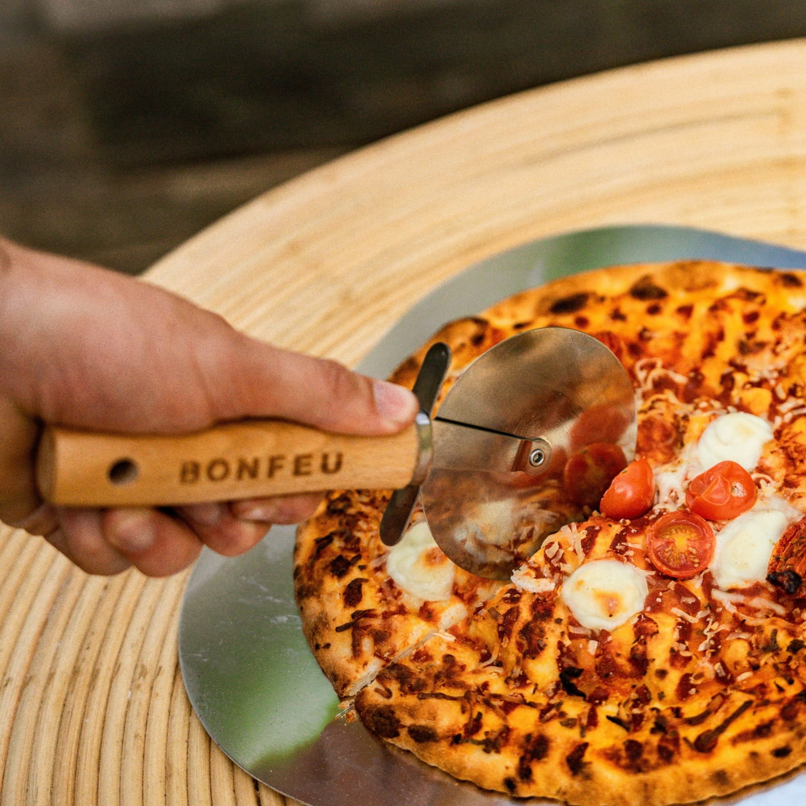 Jeśli kochasz przygotowywać pizzę na świeżym powietrzu z piecem BonFeu, to BonPizza Wheel będzie Twoim niezastąpionym pomocnikiem. To klasyczne, okrągłe ostrze do pizzy zaprojektowano z myślą o maksymalnej wygodzie i precyzji krojenia – nie tylko pizzy, ale też focacci, flammkuchen czy cienkich ciast.