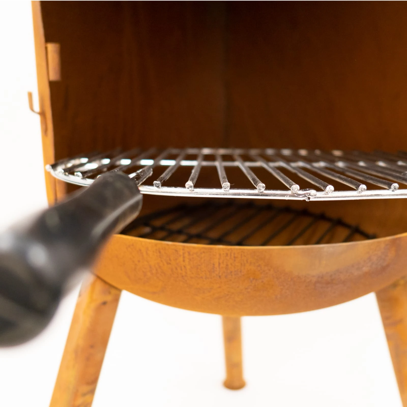 Ruszt można ustawić w dwóch różnych pozycjach, a dwa uchwyty ułatwiają jego użycie.