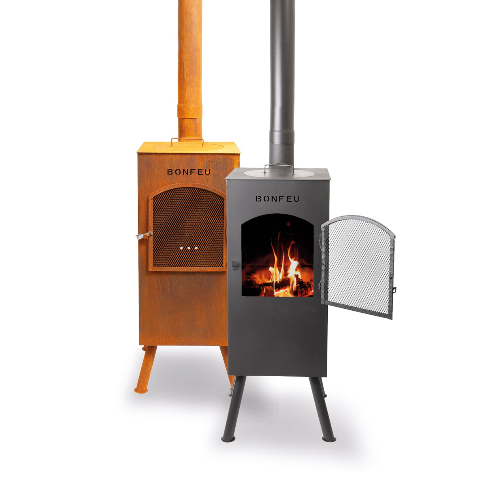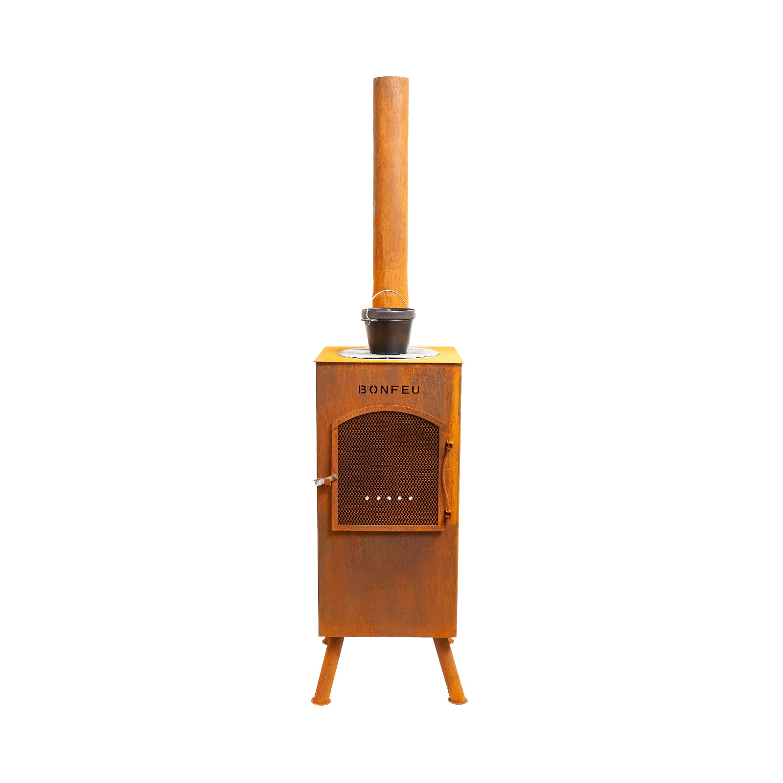 Kominek ogrodowy BonCarré marki BonFeu to średniej wielkości, wielofunkcyjny kominek, który stanie się ozdobą każdego tarasu czy ogrodu. Wyróżnia się spośród innych kominków BonFeu dzięki swojej kwadratowej konstrukcji i czterem nogom, które zapewniają stabilność. Kominek BonCarré wyposażony jest w powłokę odporną na wysokie temperatury, chroniącą przed uszkodzeniami, oraz zdejmowaną osłonę przeciwiskrową, która zapobiega wypadaniu drewna i rozprzestrzenianiu się iskier. Jak większość kominków BonFeu, BonCarré umożliwia również gotowanie.