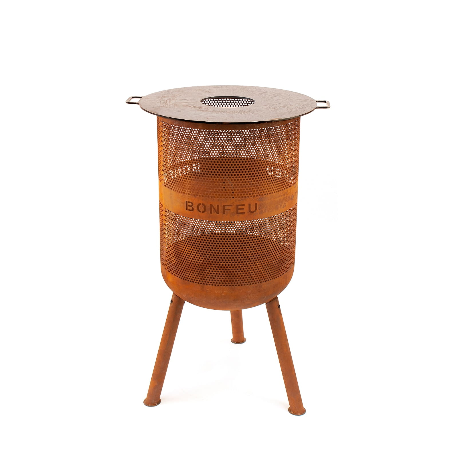 Projekt BonVes inspirowany jest bębnem starej pralki. Ten rodzaj paleniska, z perforowanym bębnem, znany jest z wysokiej wydajności cieplnej. Dodatkowo, małe otwory w stali tworzą niesamowity efekt wizualny podczas palenia. Ogień można rozpalić na dnie paleniska, ale jeśli potrzebujesz ognia na wyższej wysokości, na przykład do gotowania, możesz po prostu zawiesić dostarczoną platformę na pożądanej wysokości.