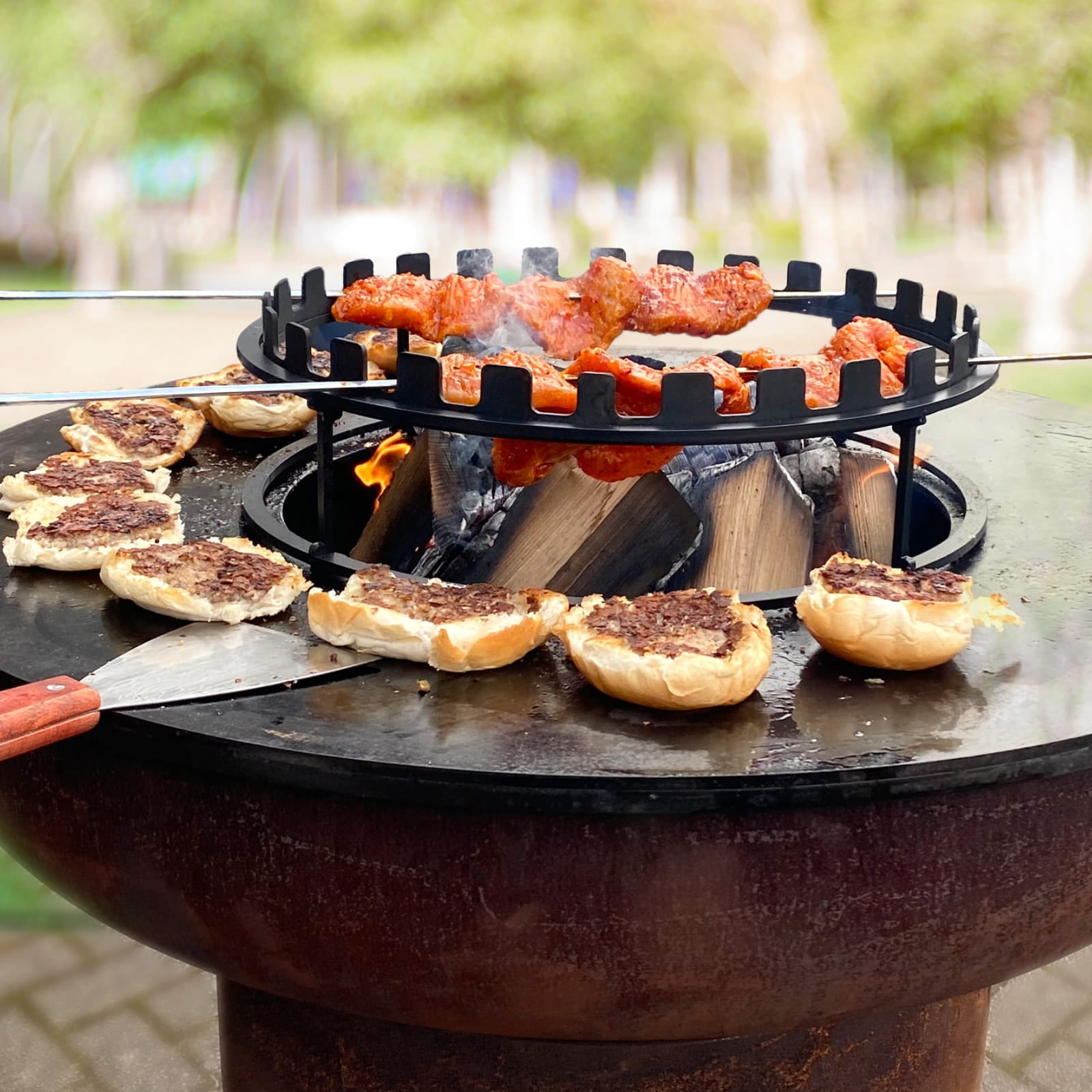 Stojak na akcesoria do BonPlanchy marki BonFeu to praktyczny dodatek, który znacznie ułatwia gotowanie na świeżym powietrzu. Łatwy do umieszczenia na kuchni zewnętrznej BonBiza lub misach ogniskowych BonBowl, stojak ten jest idealny do wykorzystania z piecem do pizzy BonPizza, pierścieniem do szaszłyków czy grillem na stojaku. Doskonale wpasowuje się w środek BonBiza i BonBowl, zapewniając stabilność podczas gotowania.