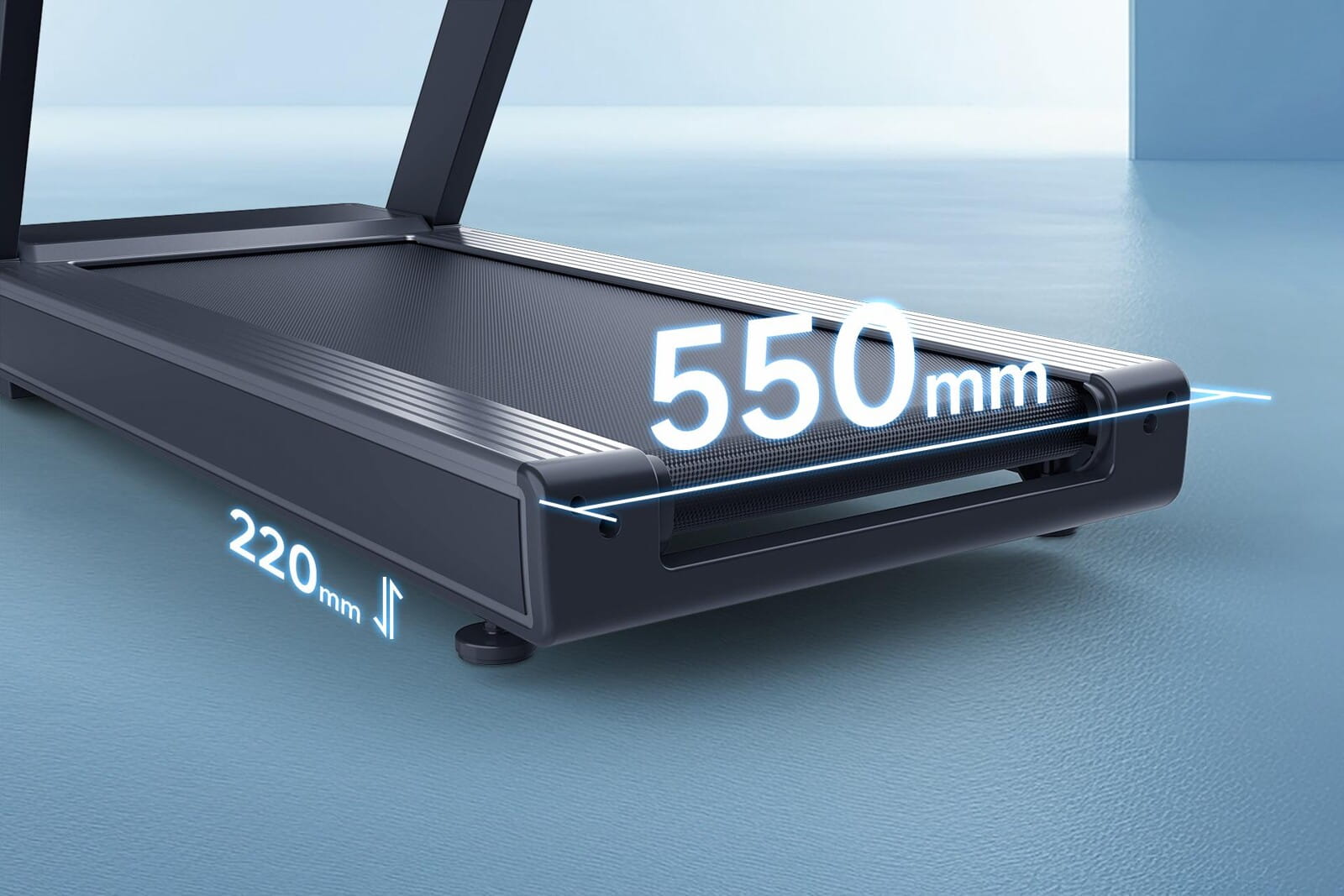 Szeroki na 55 cm pas biegowy daje poczucie pełnego bezpieczeństwa, a solidna waga urządzenia (125 kg) zapewnia stabilność nawet przy prędkości 22 km/h. To sprzęt, który nie chwieje się podczas sprintu.