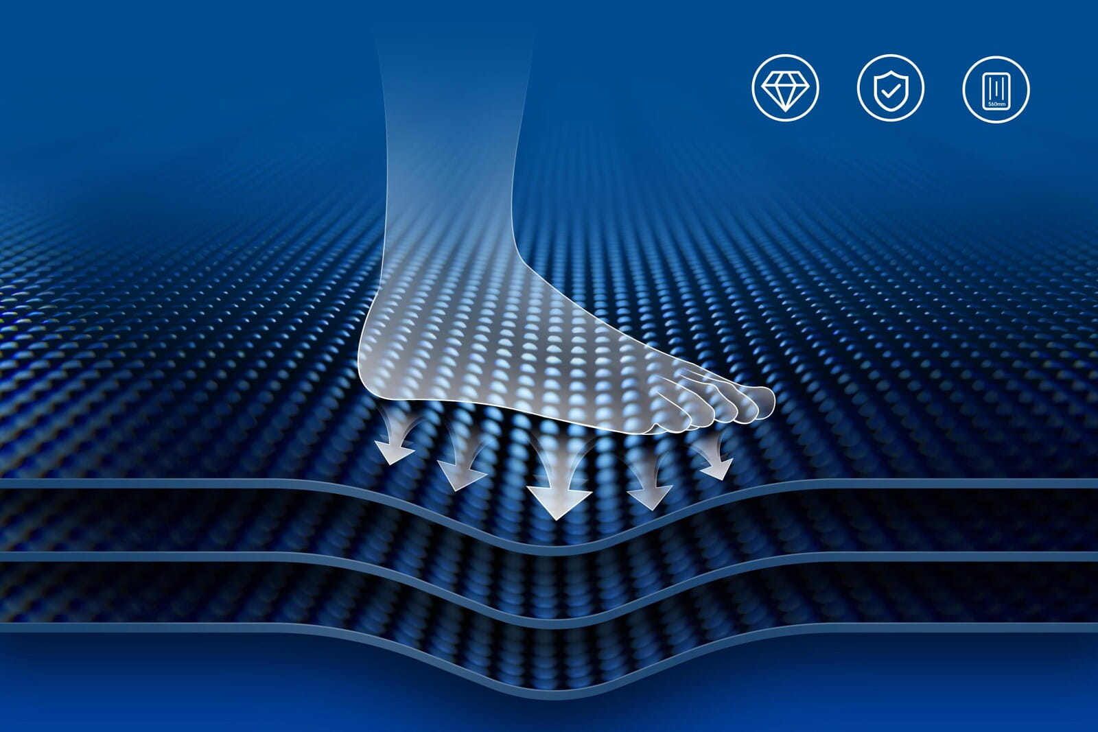 System oparty na 8 elastomerach oraz grubym, 2,2-milimetrowym pasie ortopedycznym skutecznie pochłania uderzenia, chroniąc stawy kolanowe i kręgosłup nawet podczas długich maratonów.