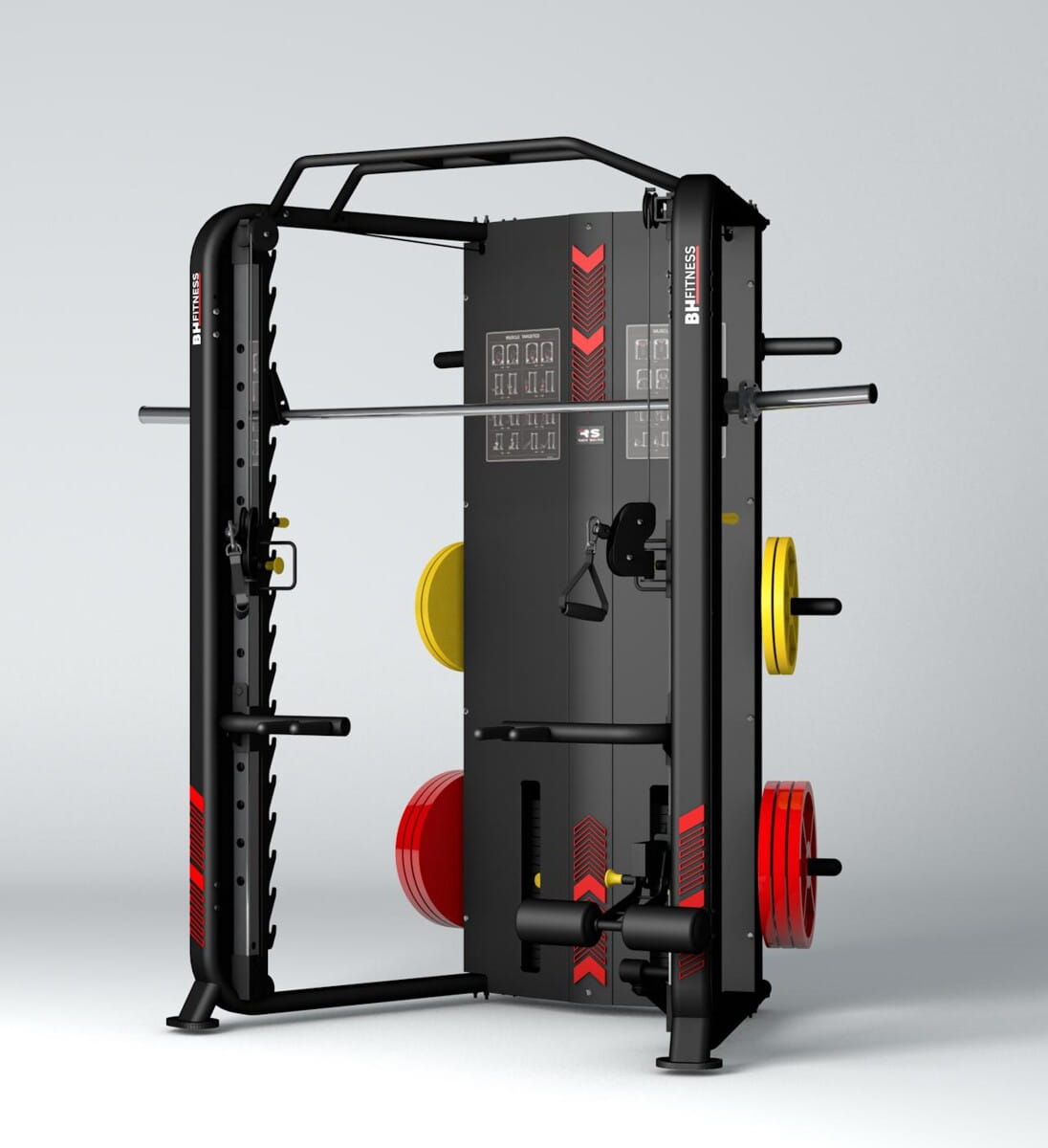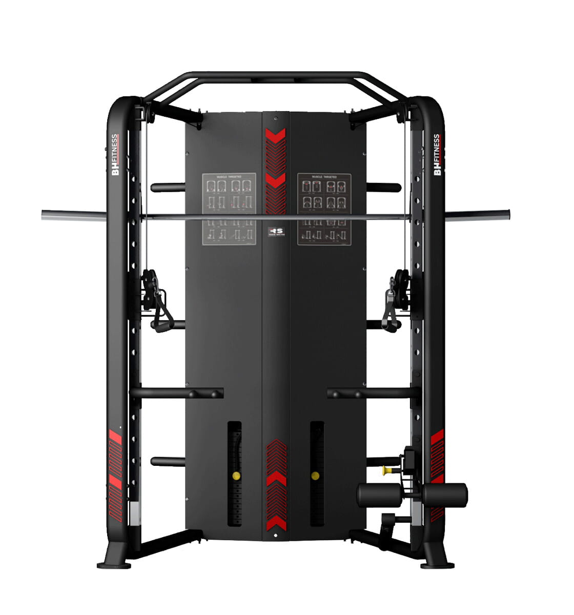 Dwa stosy o wadze 90kg/200lb. Podwójny wyciąg z niezależnie działającymi, rotacyjnymi 180º uchwytami po obu stronach urządzenia. Brama daje wiele możliwości treningowych, w tym wykonanie ponad 32 różnego rodzaju ćwiczeń.