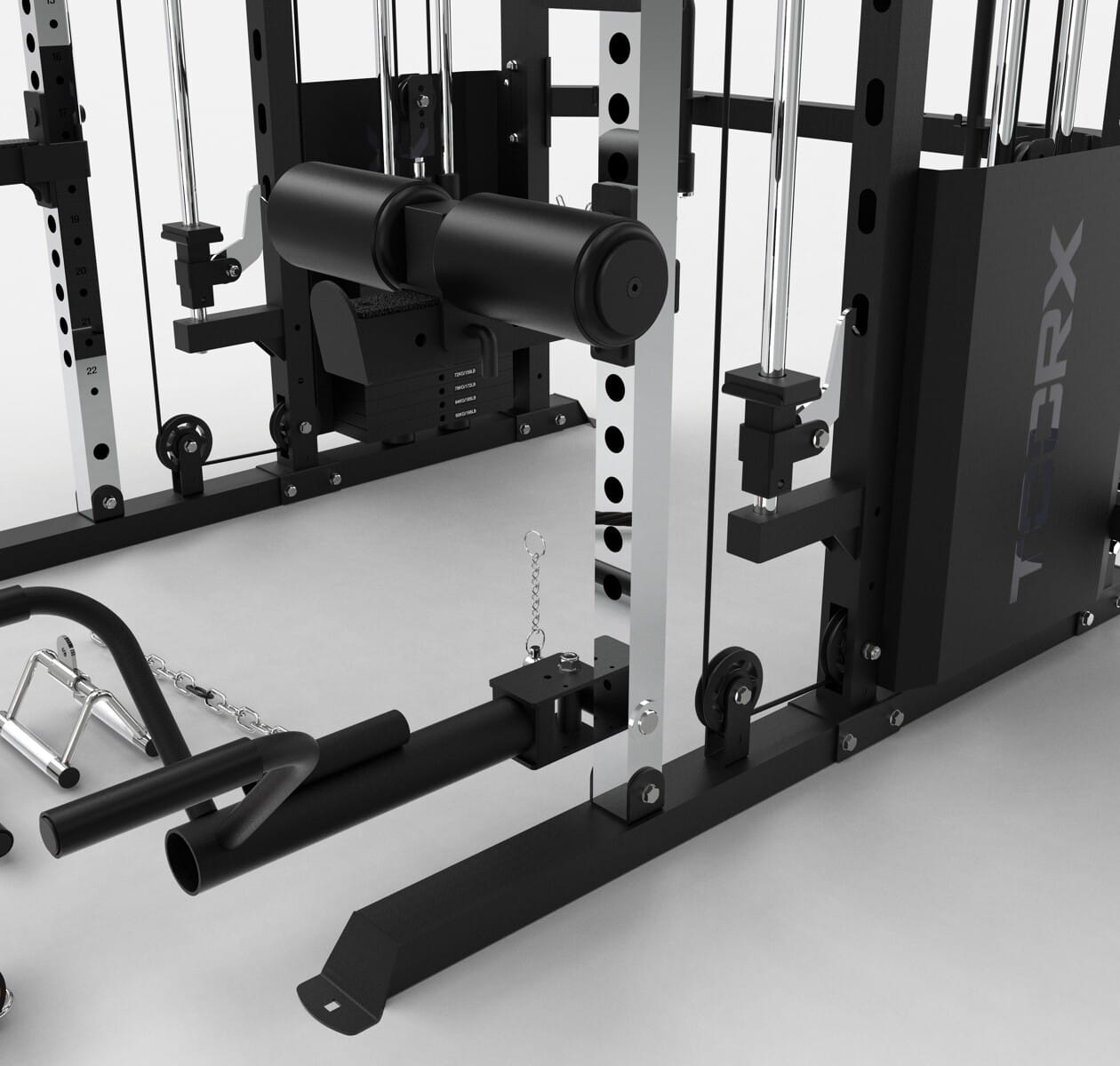 | AKCESORIA W ZESTAWIE | Uchwyty do wyciągu (różne typy), Podwójny wyciąg, Landmine, 2 J-Hook, 2 podpory bezpieczeństwa (Safety Spotter Arms), Drążek do podciągania, Poręcze do pompek, Uchwyt na gryfy, 6 uchwytów na obciążenia ø50 mm, 8 zacisków ø49 mm |