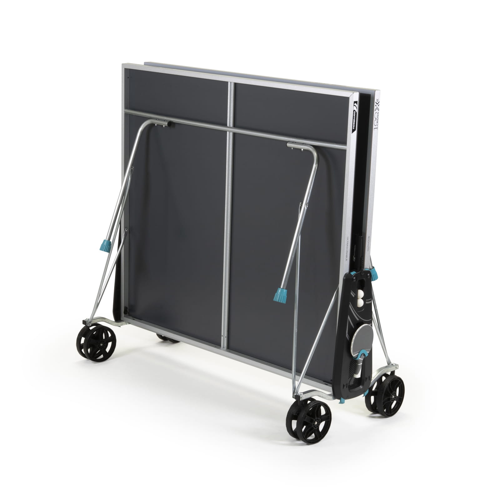 PODWÓJNE KOŁA: Stoły ping pongowe Cornilleau posiadają duże podwójne koła o grubości 32 mm i średnicy 200 mm. Takie rozwiązanie zwiększa toczenie kół oraz stabilność stołu. Większe koło z łatwością wtoczy się przez duże przeszkody takie jak schody, progi kamienie. Łatwiej pokonuje gęstą trawę i inne nierówności.