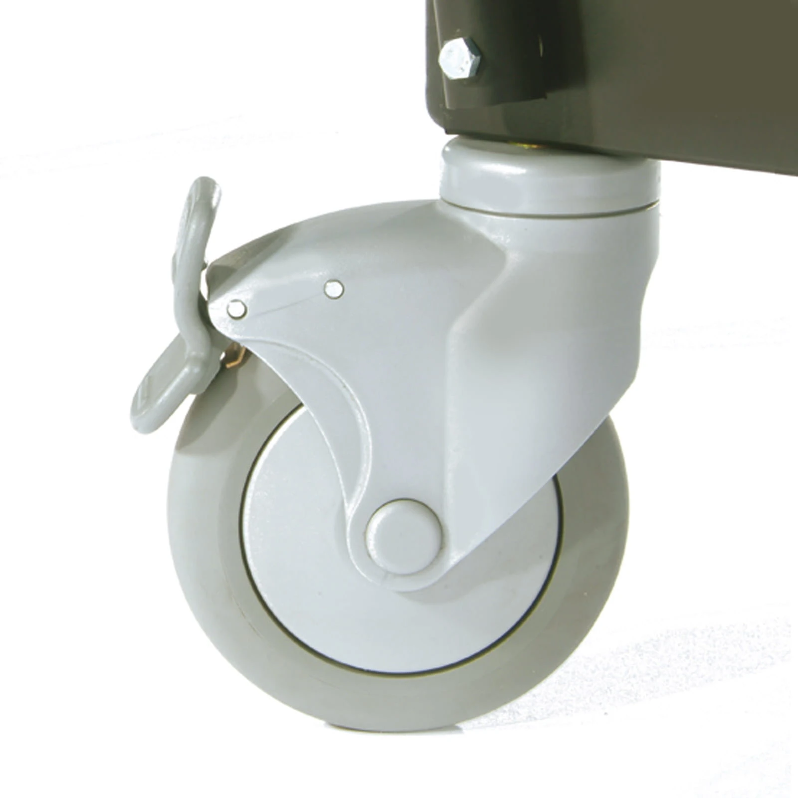 KÓŁKA Z HAMULCAMI: Mobilność stołu ułatwiają specjalne kółka z łożyskami kulkowymi, które umożliwiają łatwe przemieszczanie na różnych powierzchniach wewnętrznych, jednocześnie chroniąc delikatne podłogi w salach sportowych. Cztery hamulce z blokadą kierunkową zapewniają, że stół pozostanie na swoim miejscu, niezależnie od podłoża, na jakim jest ustawiony.
