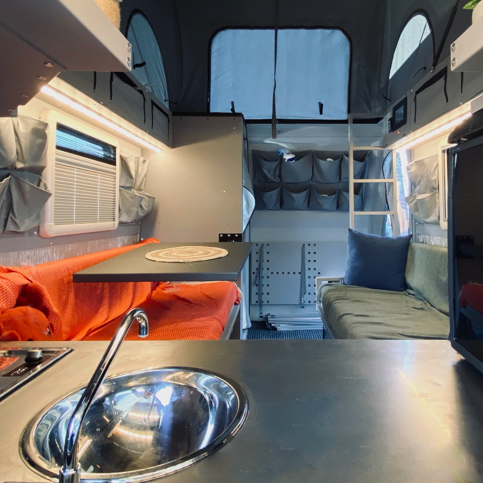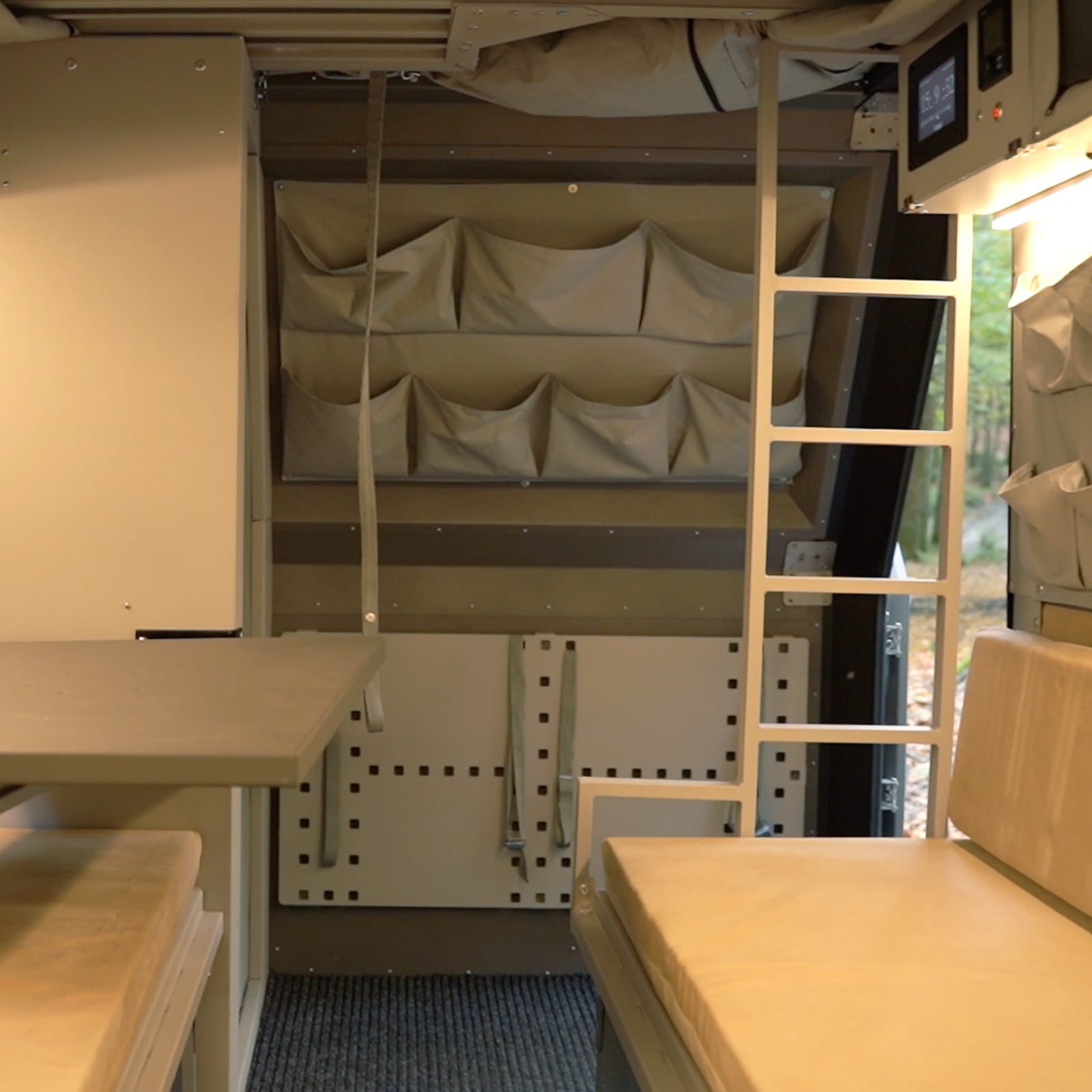 Przemyślane wnętrze oferuje przestrzeń do komfortowego spania nawet dla czterech osób, pełną kuchnię oraz łazienkę typu wet room, w której cała przestrzeń jest przystosowana do kontaktu z wodą. Wyposażenie obejmuje wydajny system elektryczny, zbiorniki na wodę oraz szereg praktycznych schowków i organizerów, dzięki czemu zachowasz porządek i bezpieczeństwo podczas podróży. Całość uzupełnia zawieszenie CDS z trzema trybami pracy, które zapewnia stabilność i bezpieczeństwo zarówno na drodze, jak i w trudnym terenie.