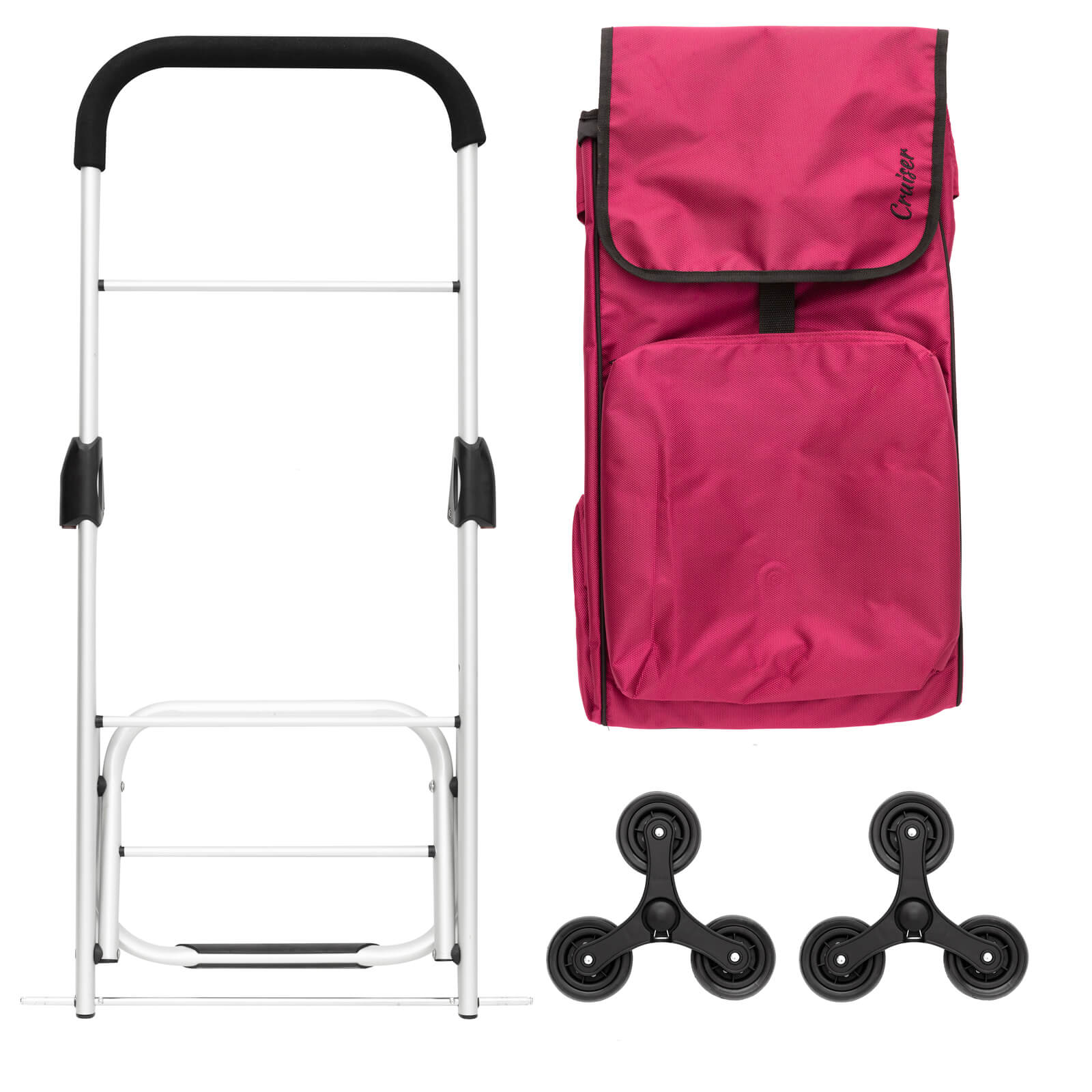 Pusty wózek Cruiser waży 2,5 kg. Wykonany jest z wodoodpornego, trwałego nylonu i poliestru, oraz został umieszczony na aluminiowej ramie. Jest to produkt absolutnie dla każdego. Pomoże w codziennych zakupach seniorom, rodzicom podczas robienia większych zapasów, kobietom w ciąży, które nie powinny nic dźwigać. Jeżeli masz problem ze stawami, jesteś po operacji lub kontuzji, wózek ułatwi Ci załatwianie sprawunków. Przyda się także każdemu zwolennikowi zdrowego stylu życia, bywalcowi targowych straganów. Pakując zakupy prosto do wózka, nie potrzebujesz plastikowych toreb, dzięki czemu chronisz środowisko. Dodatkowo oszczędzasz czas i nie musisz przepakowywać produktów.