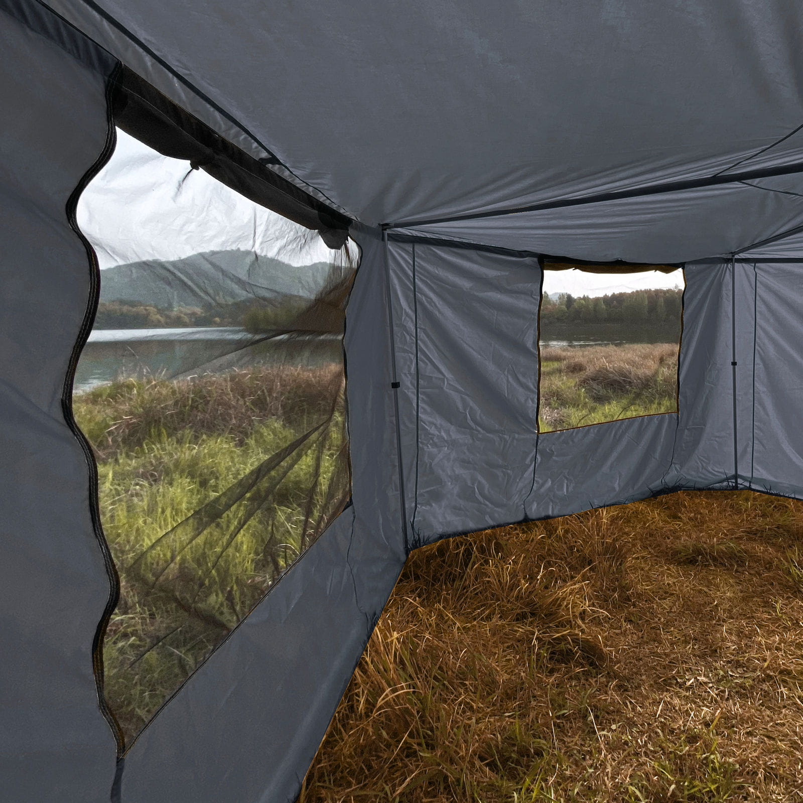W ściankach bocznych znajdują się 2 okienka oraz 2 otworzy drzwiowe. W zależności od preferencji możesz je zasłonić lub odsłonić. W każdym umieszczono moskitierę, która zabezpieczy Cię przed komarami. Wystarczy, że postawisz w namiocie źródło światła i możesz relaksować się do późnych godzin wieczornych, na łonie natury z dala od nieprzyjemnych ugryzień owadów.
