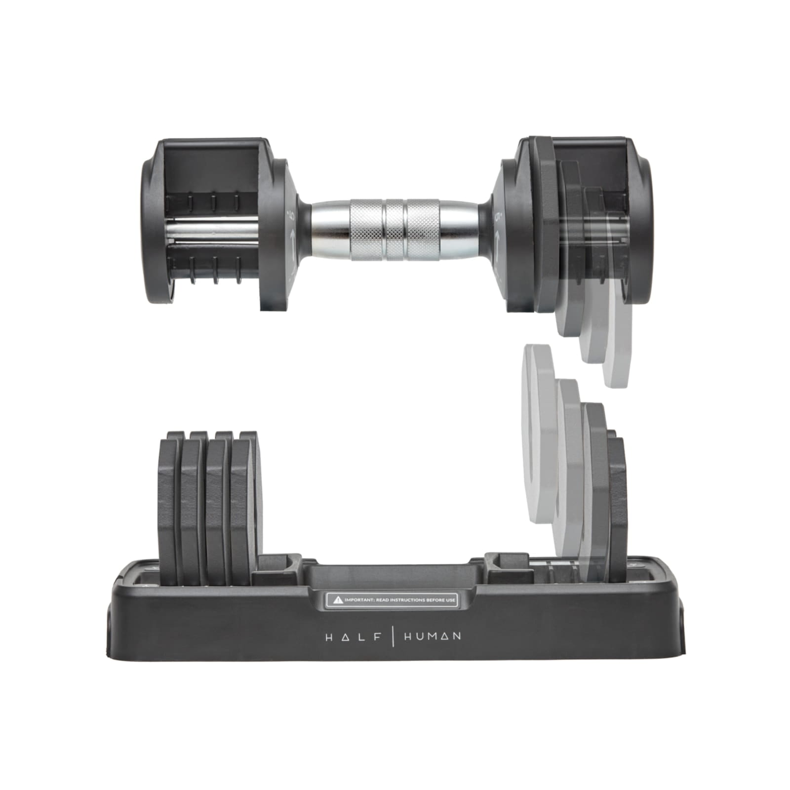 Hantle Half Human 5 kg sprzedawane są w zestawie 2 sztuk i zawierają praktyczną tackę do przechowywania, która pomaga utrzymać porządek i łatwy dostęp do sprzętu. Hantle regulowane 5 kg marki Half Human to nie tylko funkcjonalność i wygoda, ale także solidna inwestycja w Twoją formę i zdrowie.
