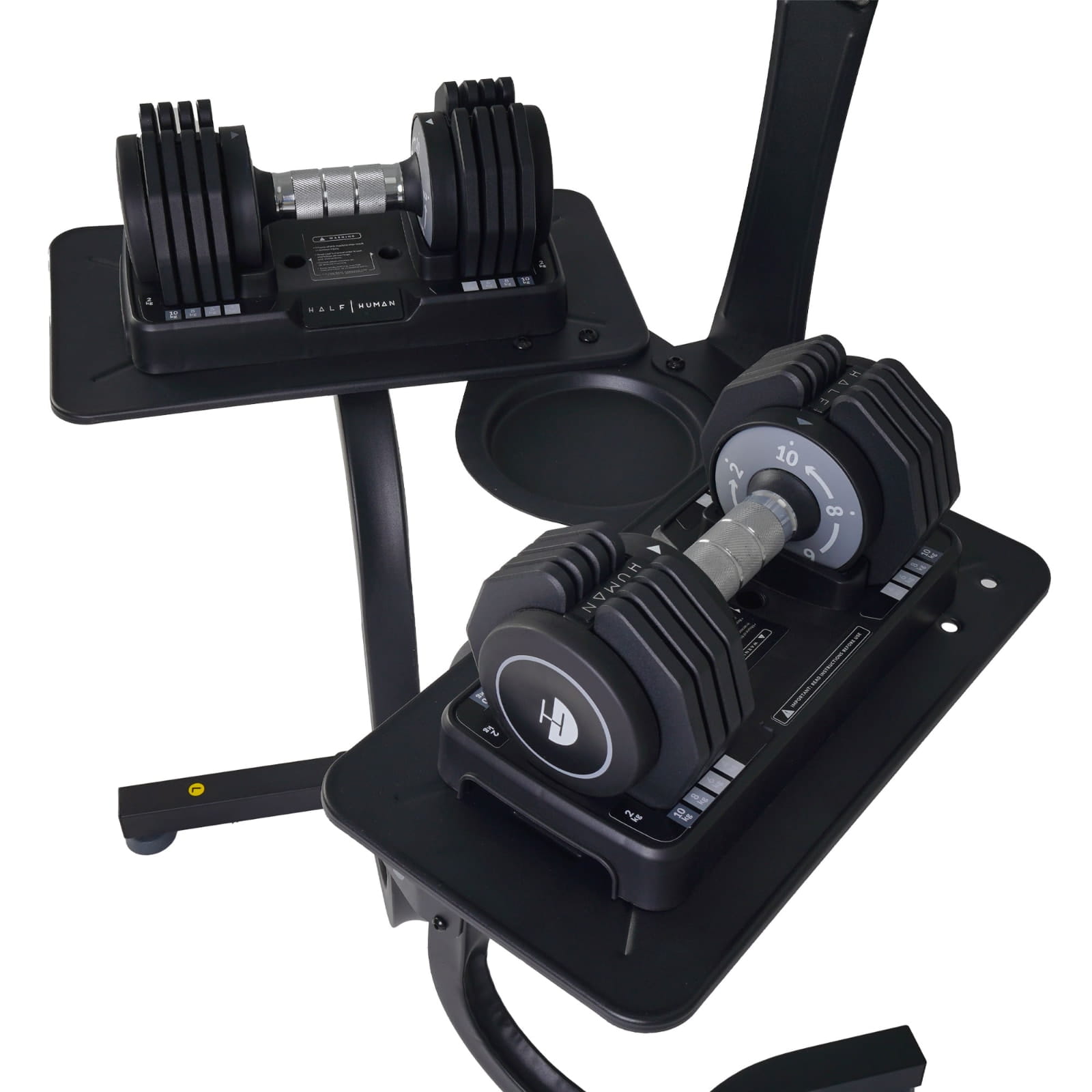 Stojak na hantle regulowane marki Half Human to nie tylko funkcjonalność i bezpieczeństwo, ale także stylowy element Twojej siłowni, który podniesie komfort i efektywność Twoich ćwiczeń.