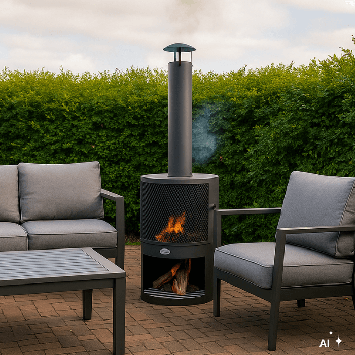 Kominek ogrodowy Hamar to solidna i stylowa propozycja marki HEAT Outdoor Living stworzona z myślą o klimatycznych wieczorach na tarasie lub w ogrodzie. Wykonany z lakierowanej proszkowo stali, prezentuje elegancką, cylindryczną konstrukcję wyposażoną w drzwi z siatką przeciwiskrową oraz wysoki komin, który zapewnia skuteczny ciąg powietrza i efektywne odprowadzanie dymu.