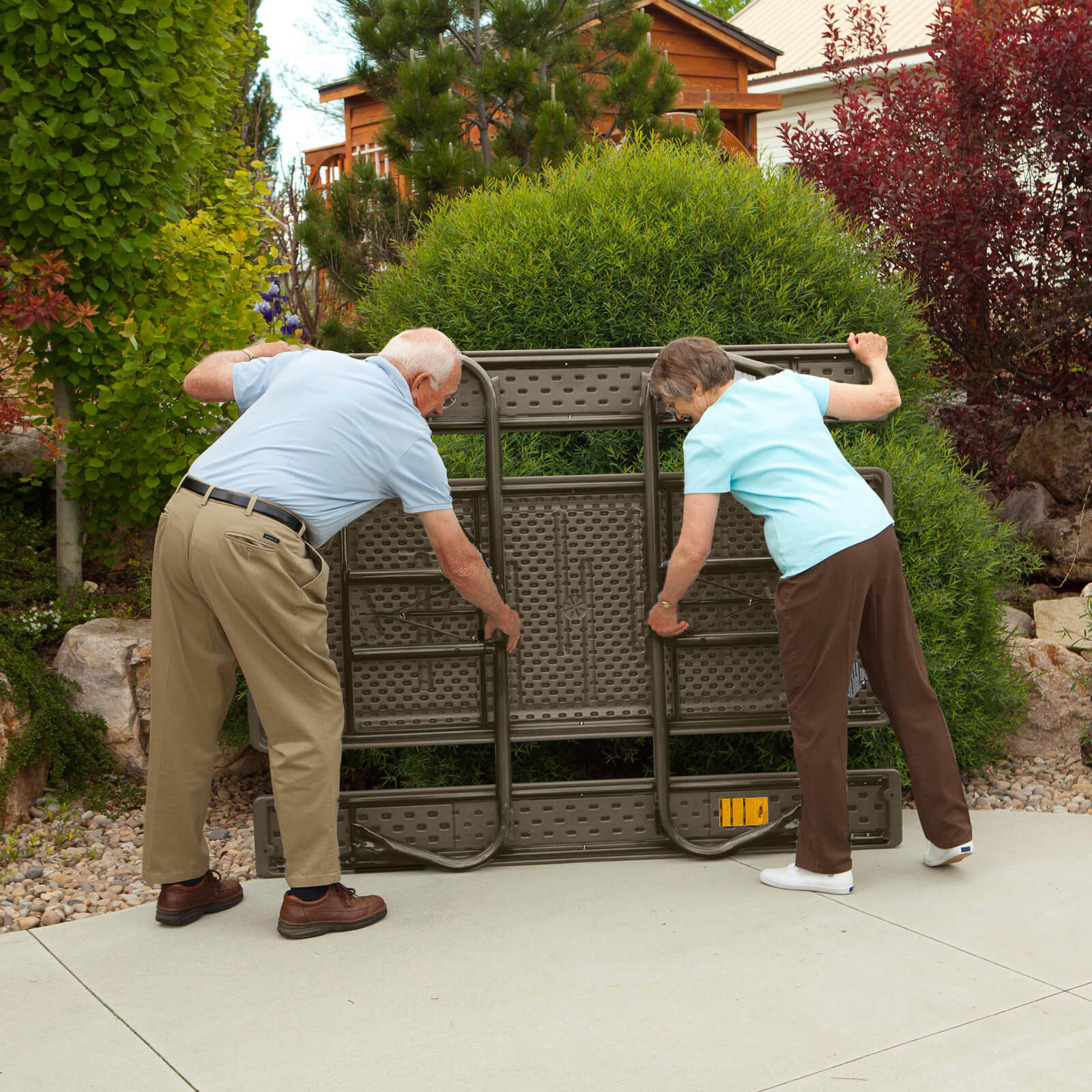 Składany zestaw ogrodowy marki Lifetime to dodatkowe miejsce do jedzenia i siedzenia poza domem. Przy stole komfortowo usiądzie nawet 8 osób. Ze względu na swój brązowy kolor, zestaw idealnie wpasuje się w wystrój Twojego ogrodu. Specjalne nakładki chronią podłoże przed zarysowaniem i zniszczeniem, amortyzują wstrząsy oraz eliminują problem wbijania się w ziemię czy trawę.