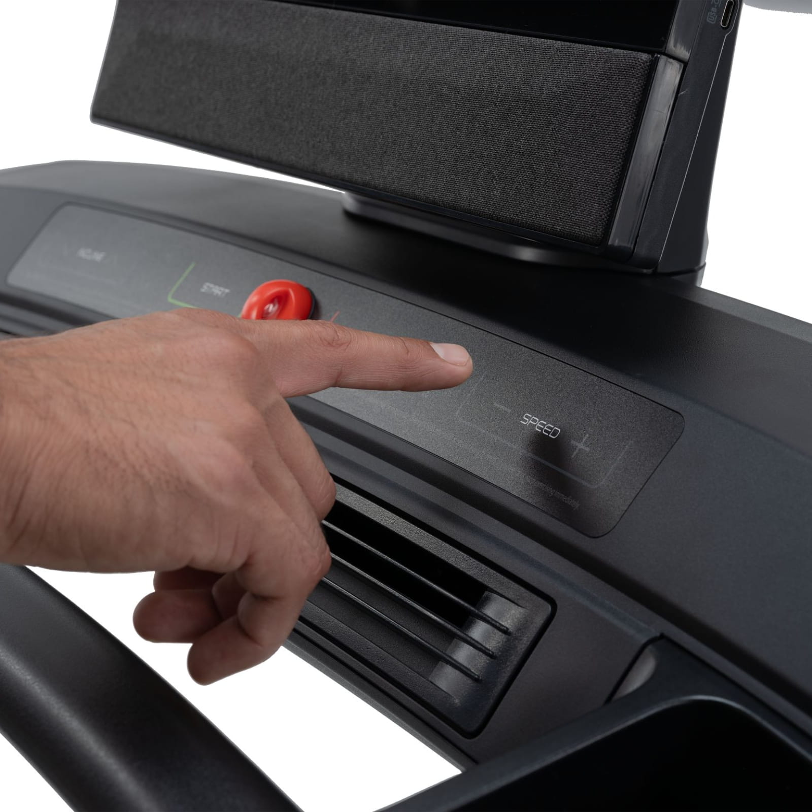 OBROTOWY WYŚWIETLACZ: 10” kolorowy, dotykowy. Ekran jest w pełni regulowany. Z łatwością ustawisz go pod dowolnym kątem. Dzięki temu, bez względu na swój wzrost, bez problemu odczytasz bieżące statystyki biegu.