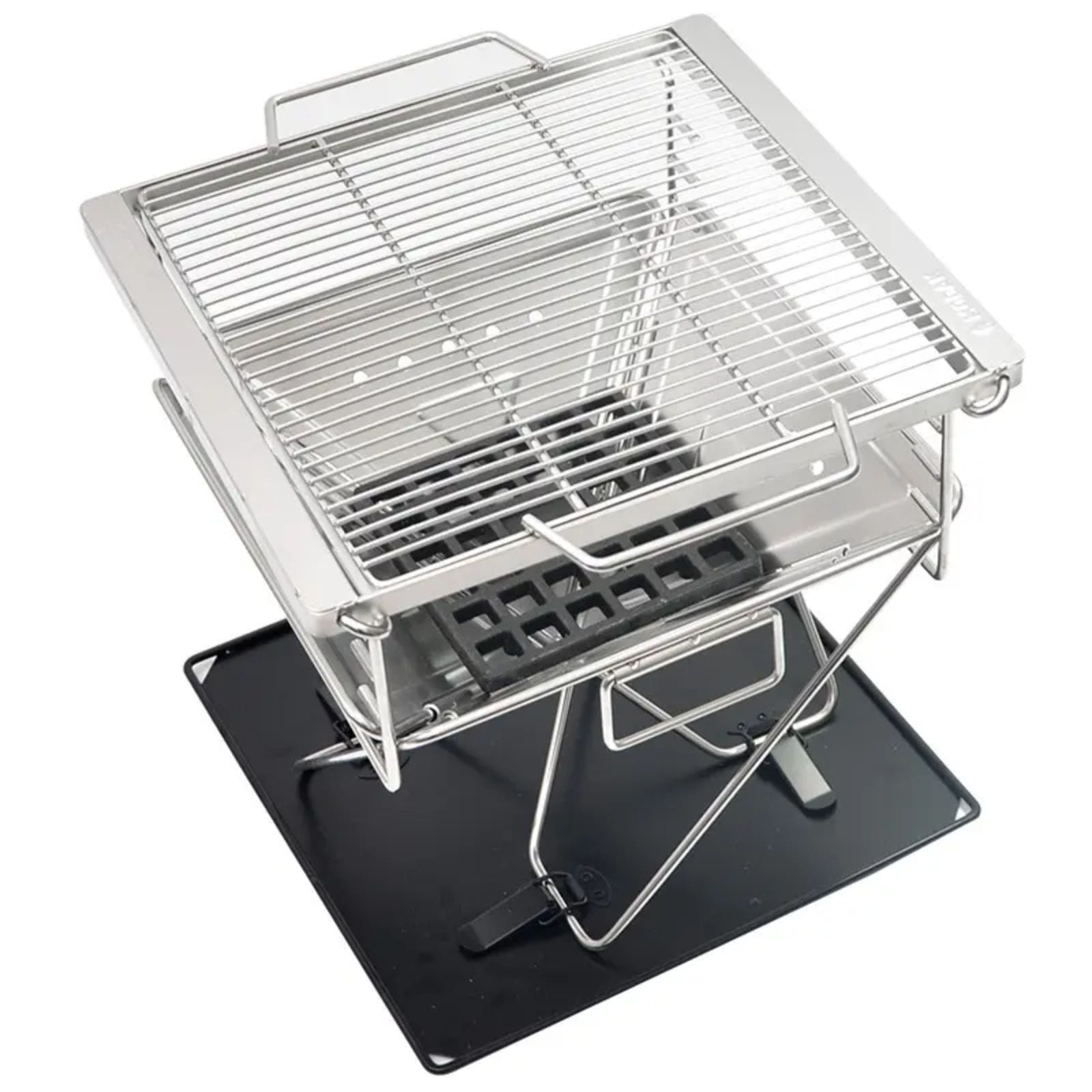 Cała konstrukcja grilla jest składana na płasko, posiada pełne ścianki przez co ogień nie jest rozpraszany przez wiatr. Konstrukcja posiada szczeliny przez co powietrze jest ciągnięte od dołu co nasyca odpowiednio ogień w tlen i mamy równomierny płomień. Całość jest odpowiednio wysoko nad ziemią na czterech stabilnych nogach.