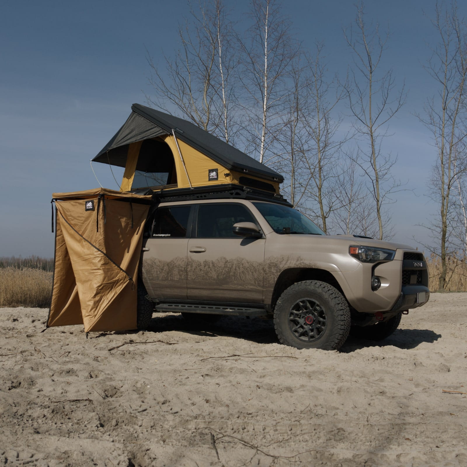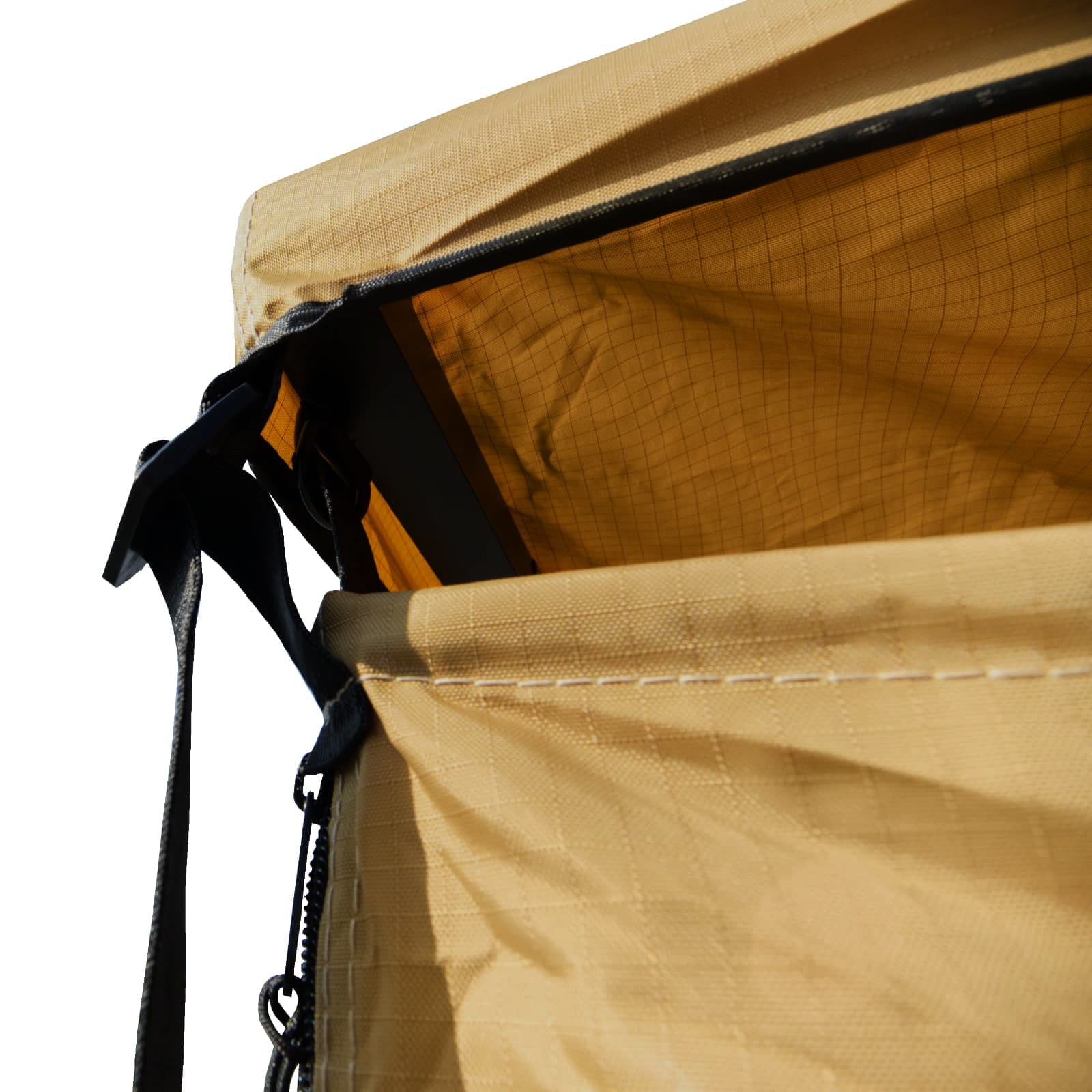 Zapinana na zamek błyskawiczny ściana tylna umożliwia bezproblemowy dostęp do pojazdu, zwiększając funkcjonalność kabiny. Jest to atut szczególnie nieoceniony w chłodne lub deszczowe dni. Szybki dostęp do samochodu oznacza, że można szybko znaleźć schronienie w samochodzie w przypadku nagłej zmiany warunków pogodowych, takich jak ulewa czy silny wiatr. W przypadku wiatru, możesz przyczepić kabinę do ziemi za pomocą dołączonych śledzi.