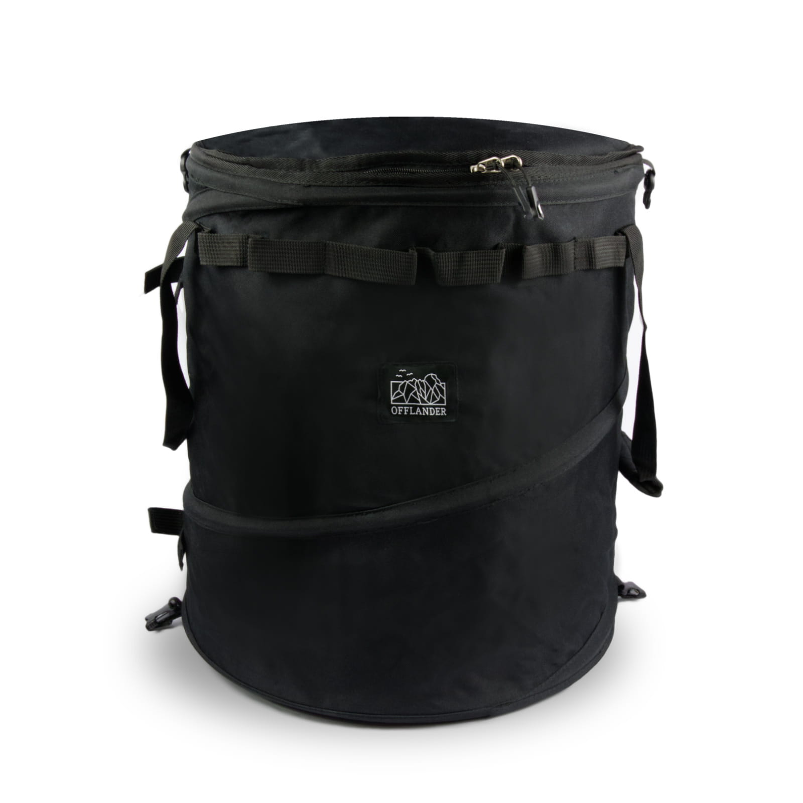 Uniwersalny cylindryczny kosz kempingowy marki OFFLANDER przyda się każdemu podróżnikowi.