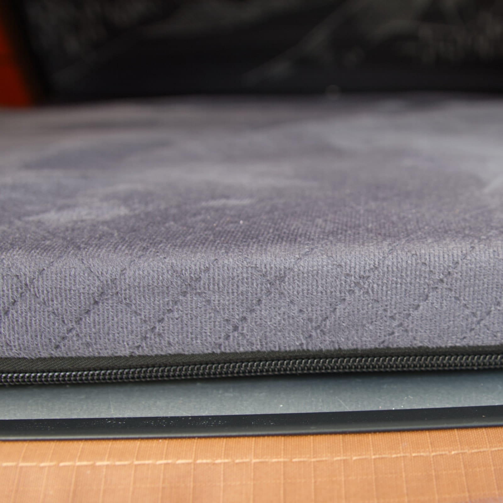 Na skorupie FOLD 4 GRIZZLY znajduje się materiałem z grafiką gór. Może jest to mała rzecz, jednak jesteśmy pewni, że ten malowniczy pejzaż umili Ci przebywanie w namiocie. Materac z pianki memory foam w miękkim w dotyku pokrowcu sprawia, że odpoczynek w namiocie jest jeszcze bardziej komfortowy.