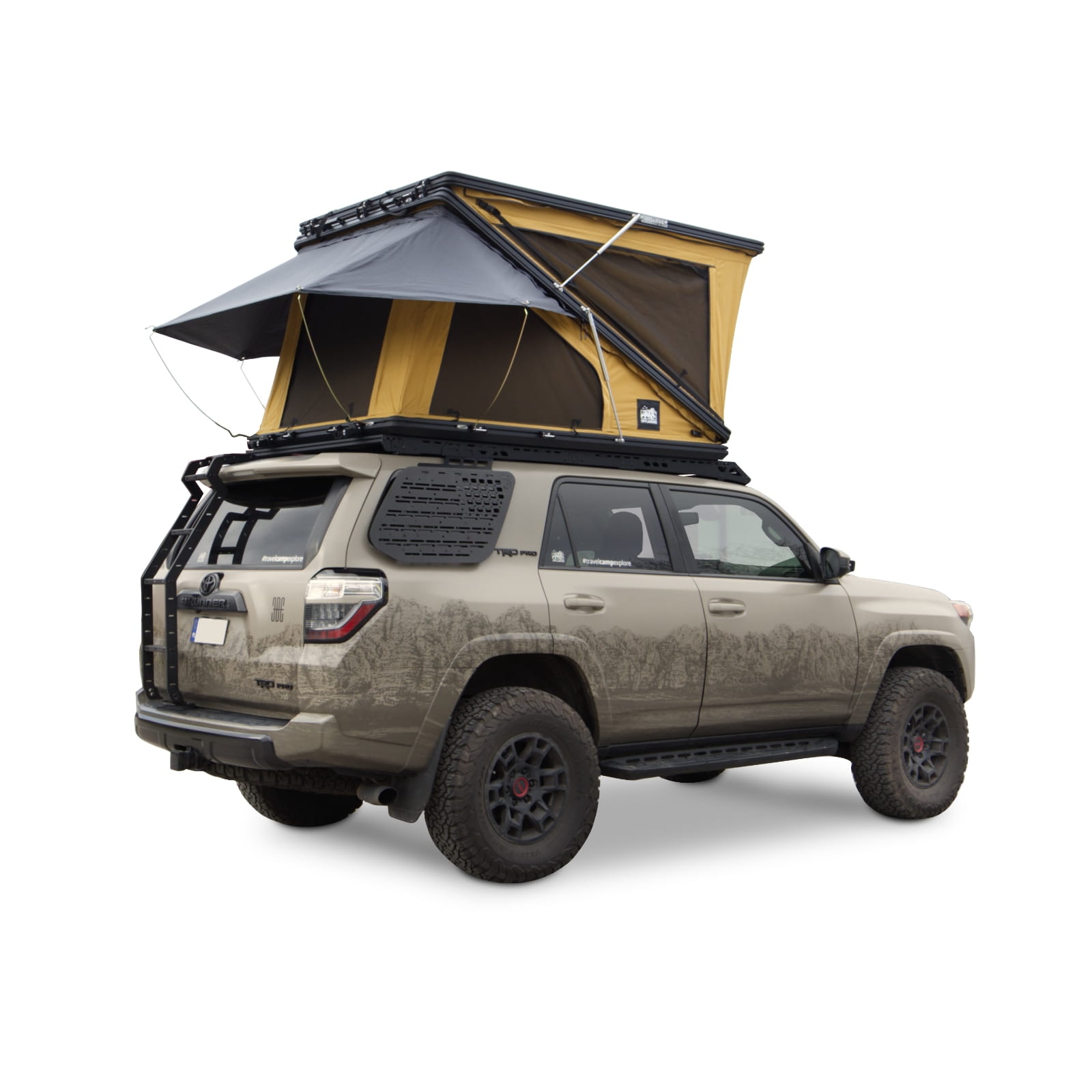Dedykowany jest do samochodów większych gabarytowo, z uwagi na przeznaczenie wyprawowe. Doskonale sprawdzi się dla 2 osobowych ekip ceniących sobie komfort, dodatkową przestrzeń, trwałość i solidne wykonanie. Jego twarda pokrywa wytrzyma przejazdy przez lasy, pustynie, a nawet śnieżne zamiecie.