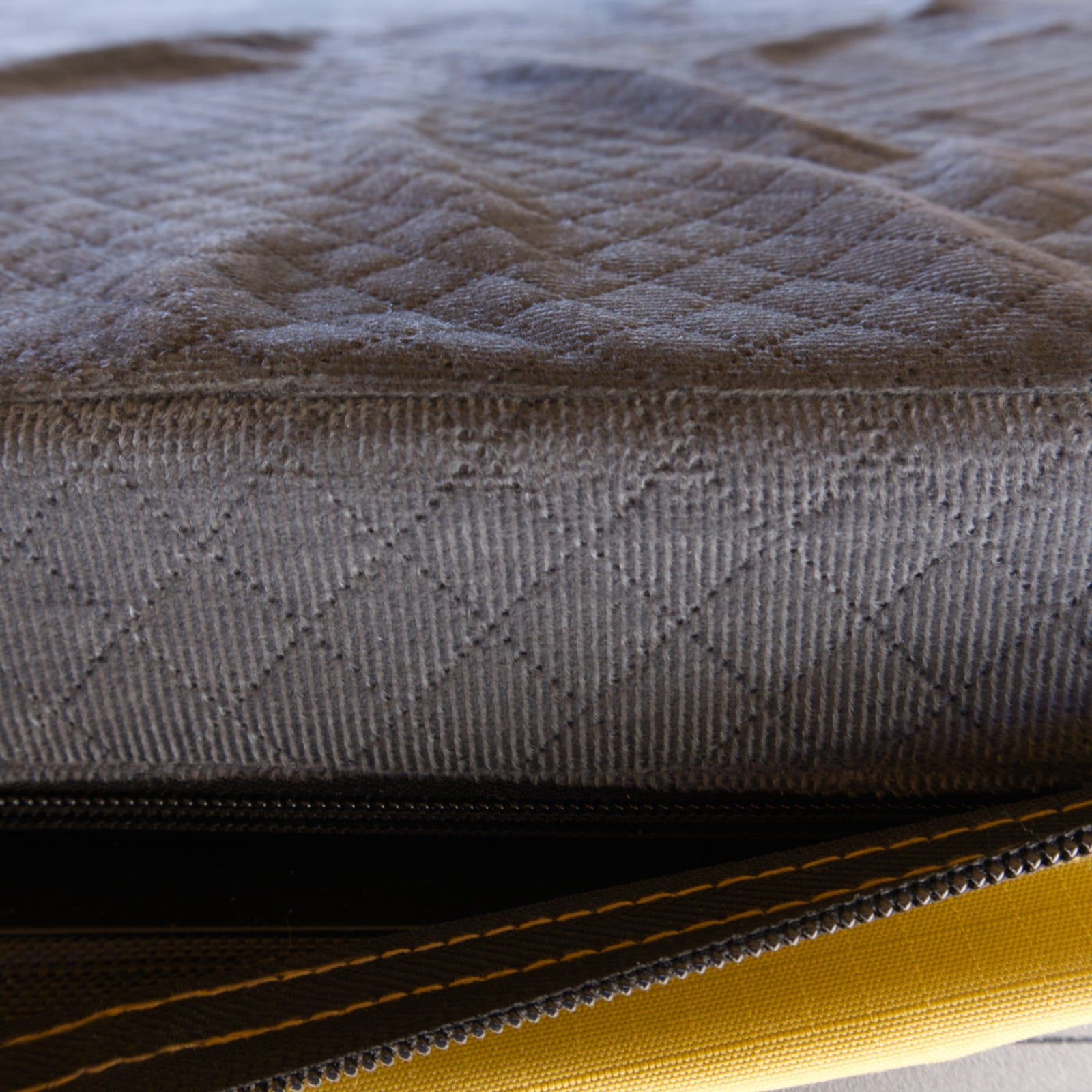 Podłoga namiotu wykonana jest z aluminiowych płyt typu Honeycomb, które charakteryzują się bardzo wysoką wytrzymałością przy stosunkowo niskiej wadze. Ten materiał, znany z zastosowań w lotnictwie i motoryzacji, zapewnia sztywność i trwałość nawet podczas intensywnego użytkowania.