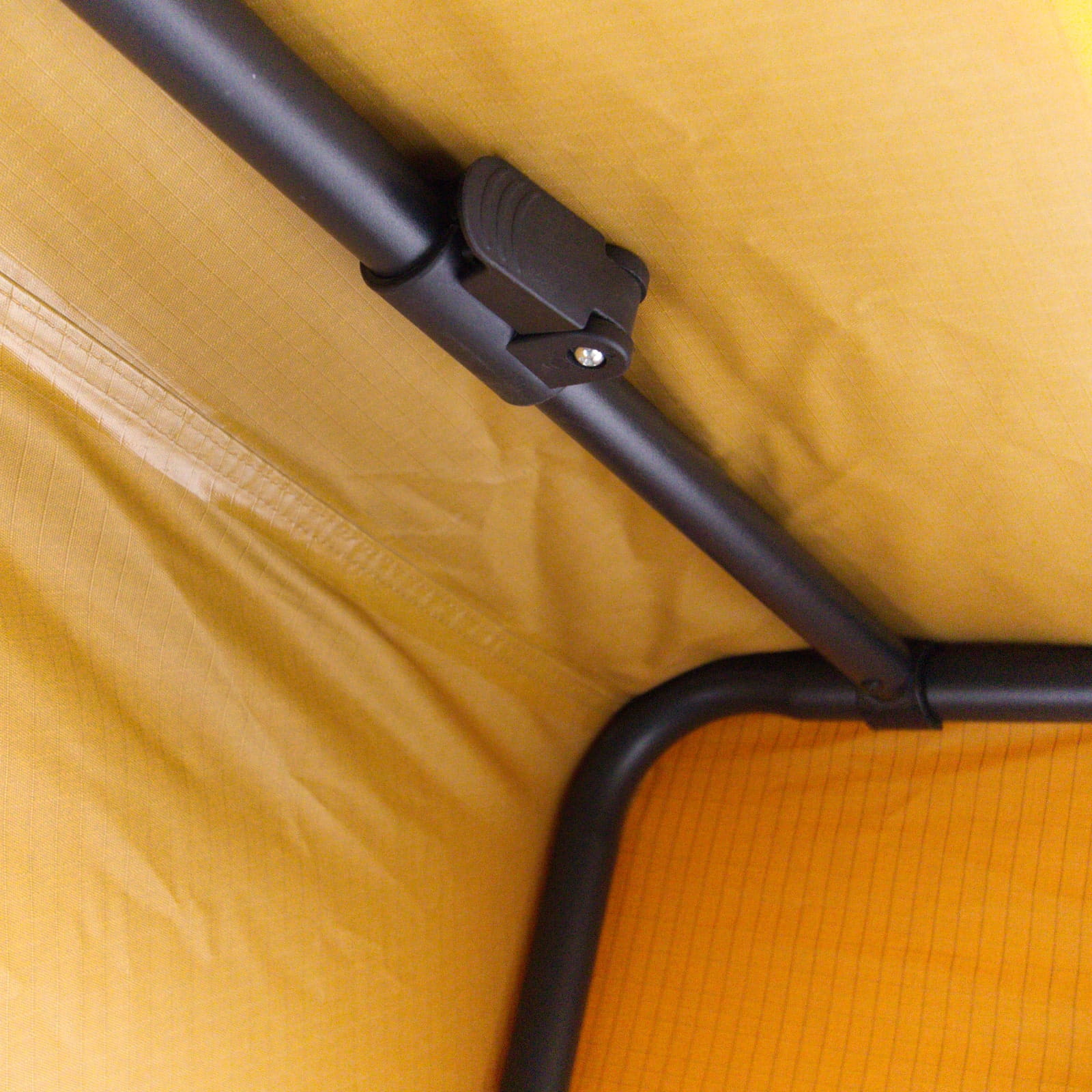 Namiot wykonany jest z wytrzymałej tkaniny typu RIP-STOP o gęstości 280G i wodoodporności 2000 mm. Materiał spokojnie wytrzyma kilkugodzinny opad intensywnego deszczu. Takie parametry tkaniny gwarantują, że będzie ona wodoodporna, odporna na pleśń i uszkodzenia mechaniczne, a także zapewni Ci właściwą wentylację i dostęp do świeżego powietrza w środku.