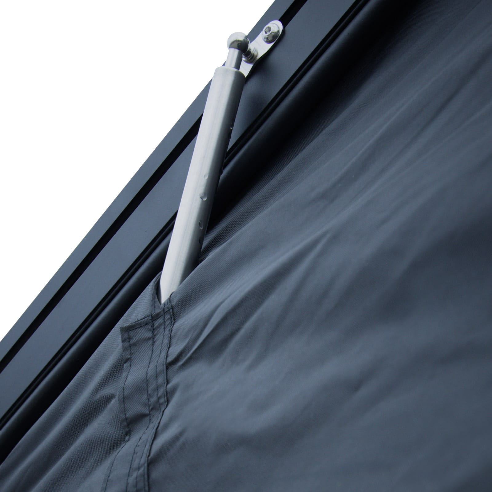 Naciągnięty tropik tworzy daszek nad wejściem oraz otworami okiennymi. Stanowi on ochronę przed deszczem i nadmiernym słońcem. Nie musisz już zamykać wszystkich okien podczas niesprzyjającej pogody.