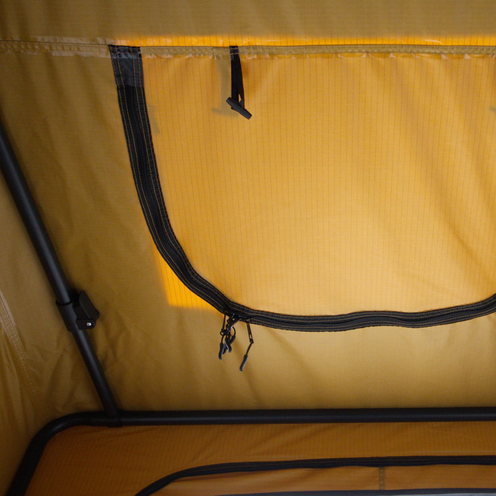 Technika RIP-STOP oznacza, że w stałych odstępach dodano nitkę mocniejszego włókna. Takie ulepszenie dodatkowo zapobiega rozdzieraniu się materiału. Zamki przy otworach okiennych także zostały zabezpieczone tak, aby woda nie dostała się do środka.