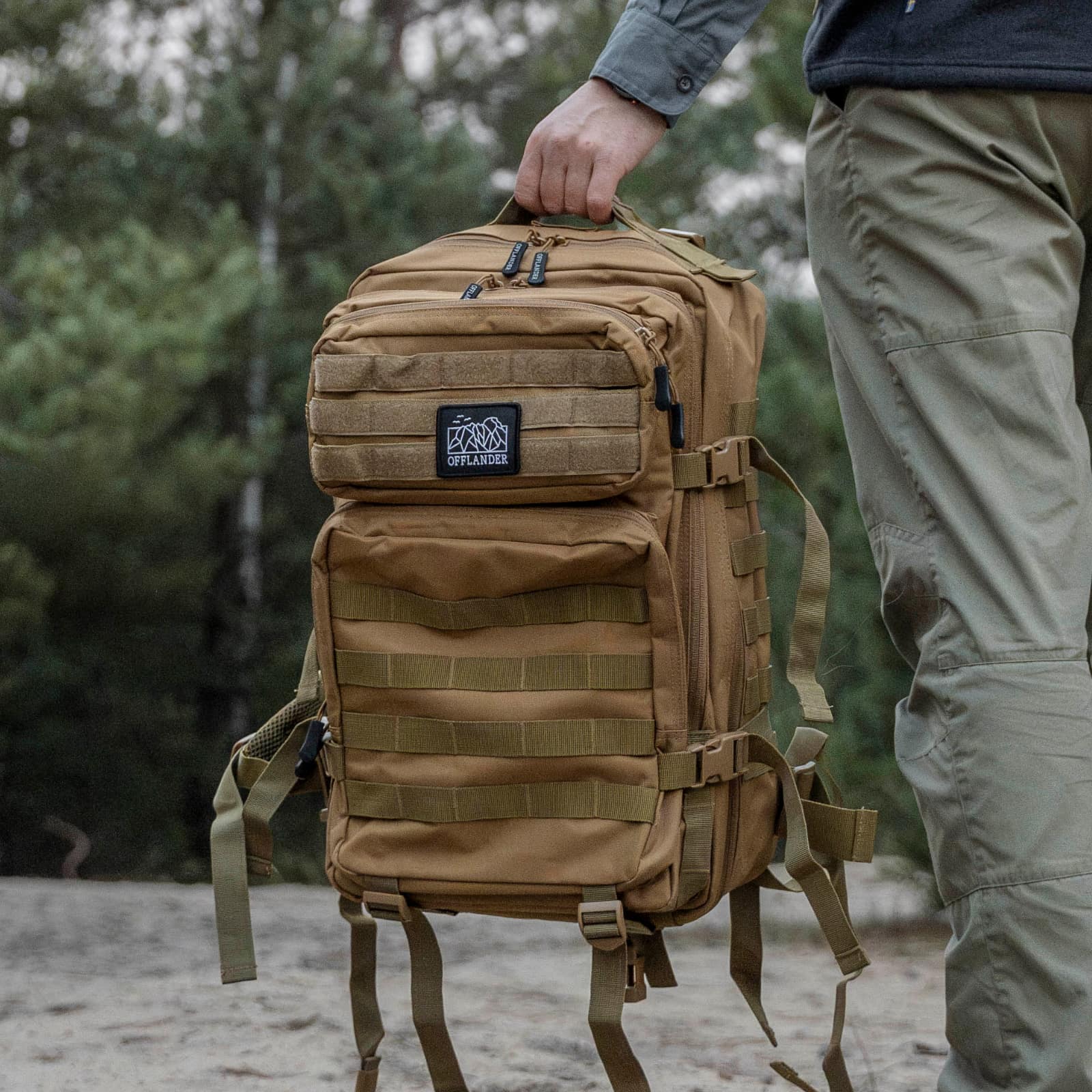Duży plecak turystyczny SURVIVAL 43l marki OFFLANDER to wyjątkowe połączenie funkcjonalności, trwałości i estetyki, zainspirowane sprzętem używanym przez najbardziej wyspecjalizowane międzynarodowe jednostki wojskowe. Z jego pojemnością 43 litrów idealnie sprawdza się zarówno podczas ekstremalnych przygód na szlaku, jak i w codziennym użytkowaniu jako miejski plecak.