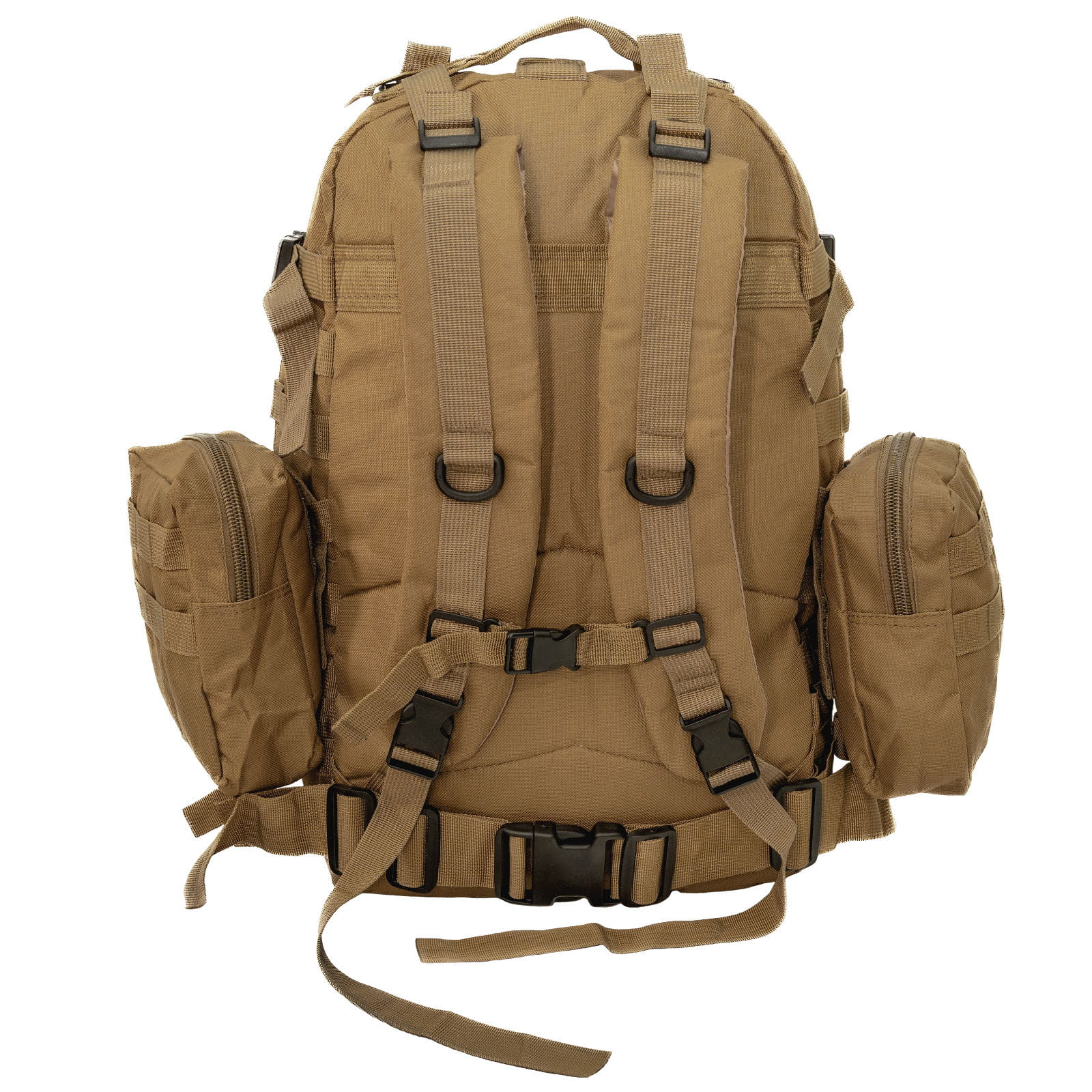 W zestawie do plecaka dołączone są dwie saszetki i jedna osobna wielofunkcyjna torba od frontu. Doczepiona jest ona do plecaka za pomocą pasków Molle z zatrzaskami oraz zabezpieczona dodatkowymi paskami kompresyjnymi z klamrami. Dwie mniejsze saszetki są zabezpieczone do boków plecaka za pomocą rzepów, dla szybkiego sciągania i zakładania. Mniejsze saszetki posiadają w środku dodatkowe otwarte kieszenie, co ułatwia organizację drobnych przedmiotów.