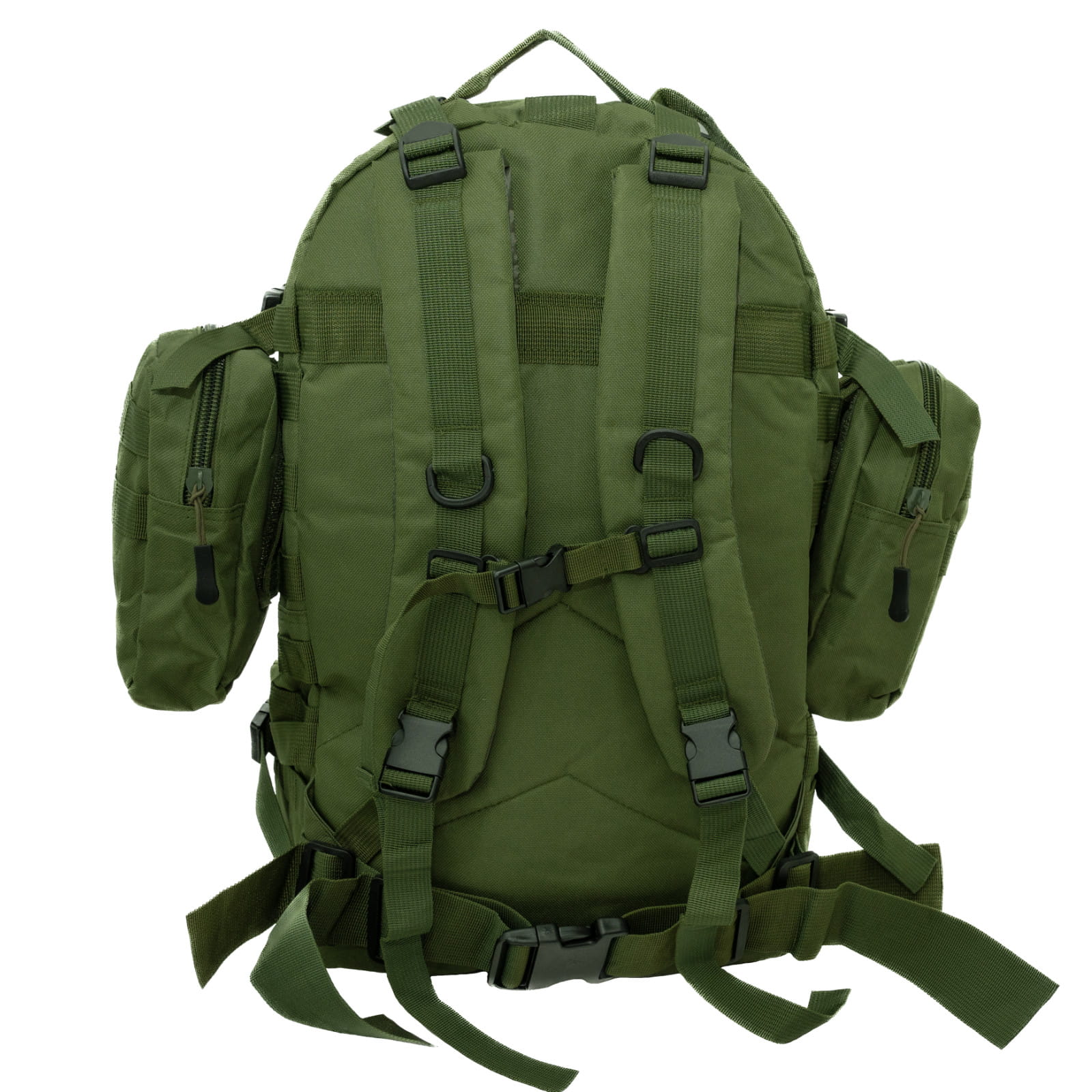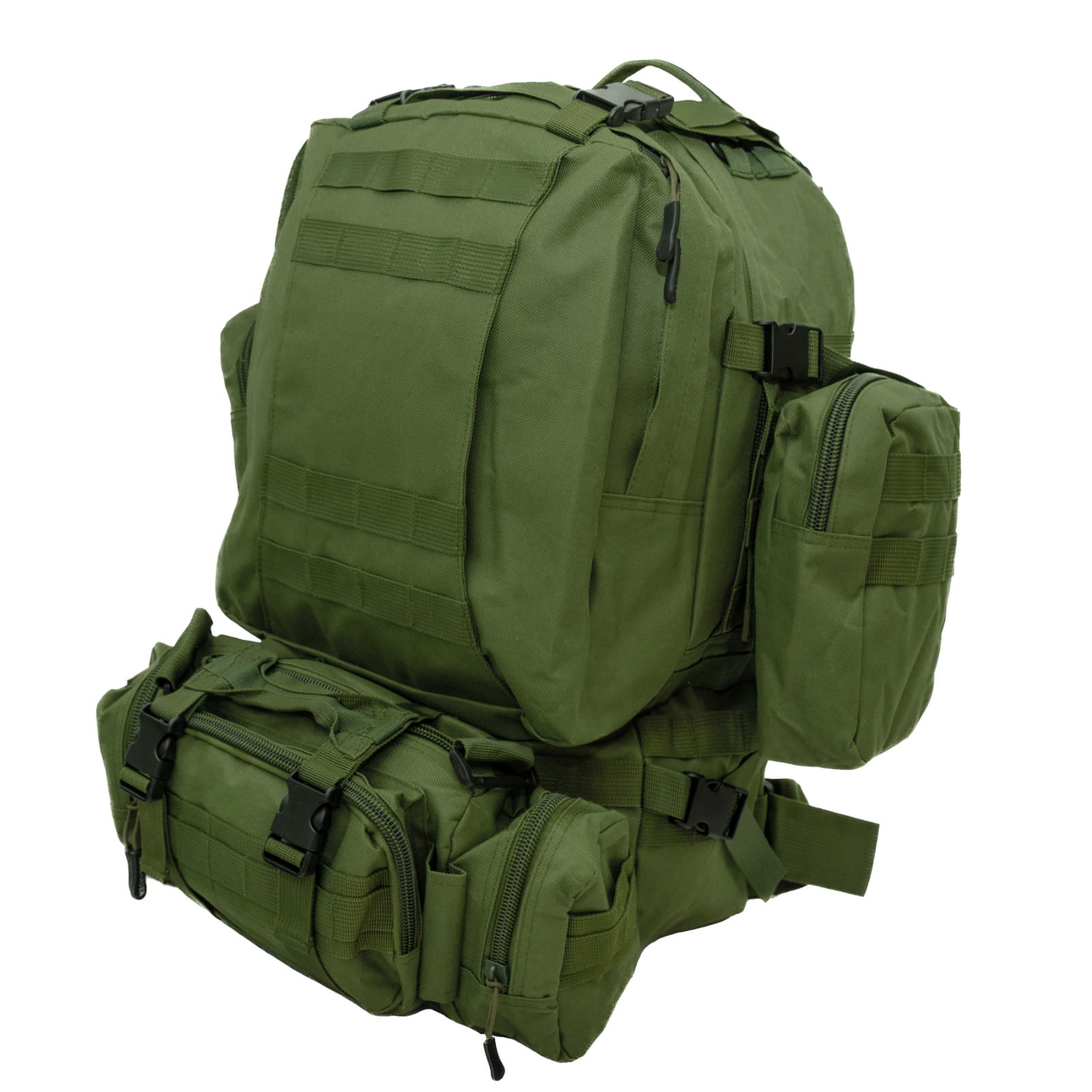 W zestawie do plecaka dołączone są dwie saszetki i jedna osobna wielofunkcyjna torba od frontu. Doczepiona jest ona do plecaka za pomocą pasków Molle z zatrzaskami oraz zabezpieczona dodatkowymi paskami kompresyjnymi z klamrami. Dwie mniejsze saszetki są zabezpieczone do boków plecaka za pomocą rzepów, dla szybkiego sciągania i zakładania. Mniejsze saszetki posiadają w środku dodatkowe otwarte kieszenie, co ułatwia organizację drobnych przedmiotów.