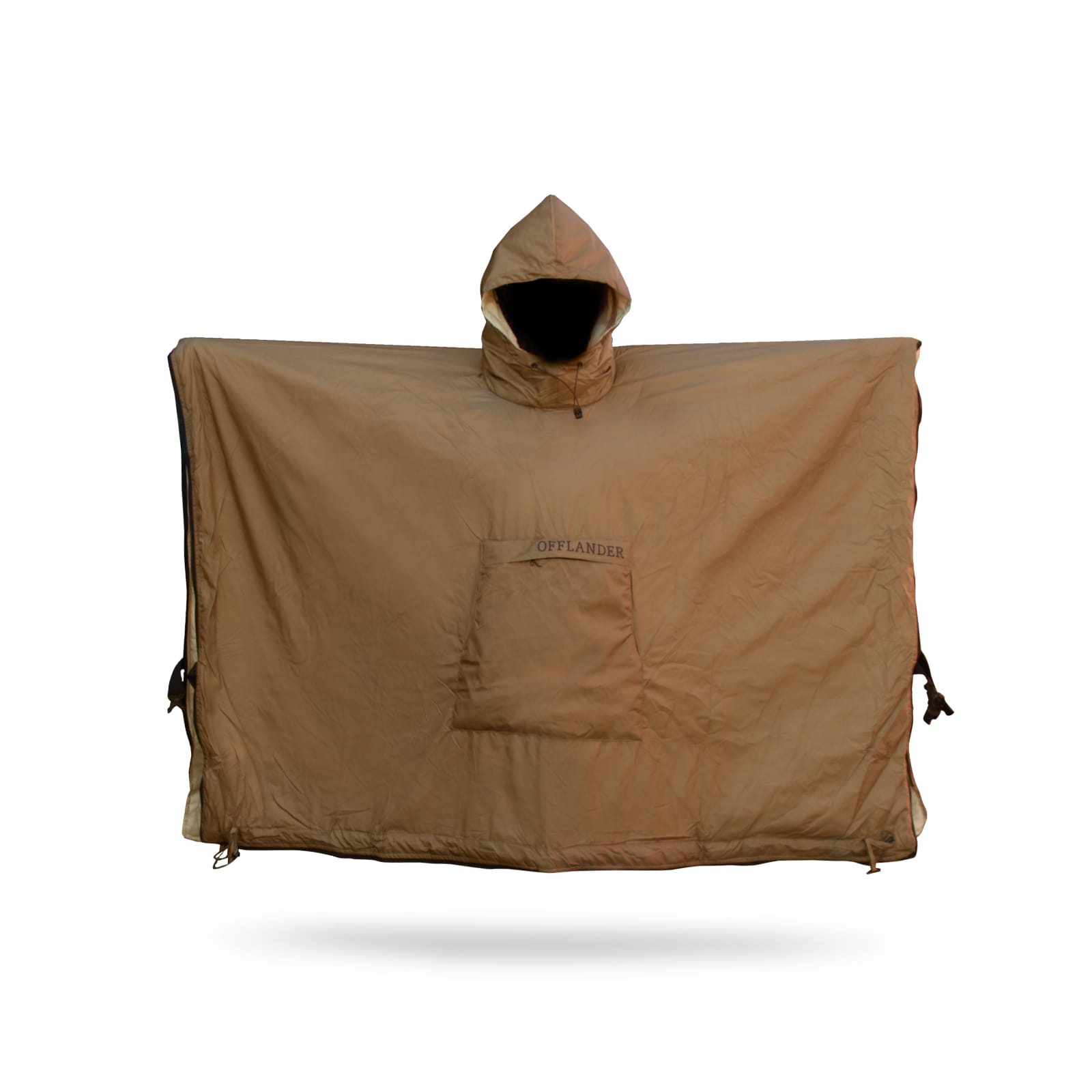 OFFLANDER PONCZO KEMPINGOWE CIENKIE Z OGRZEWACZEM BRĄZOWE