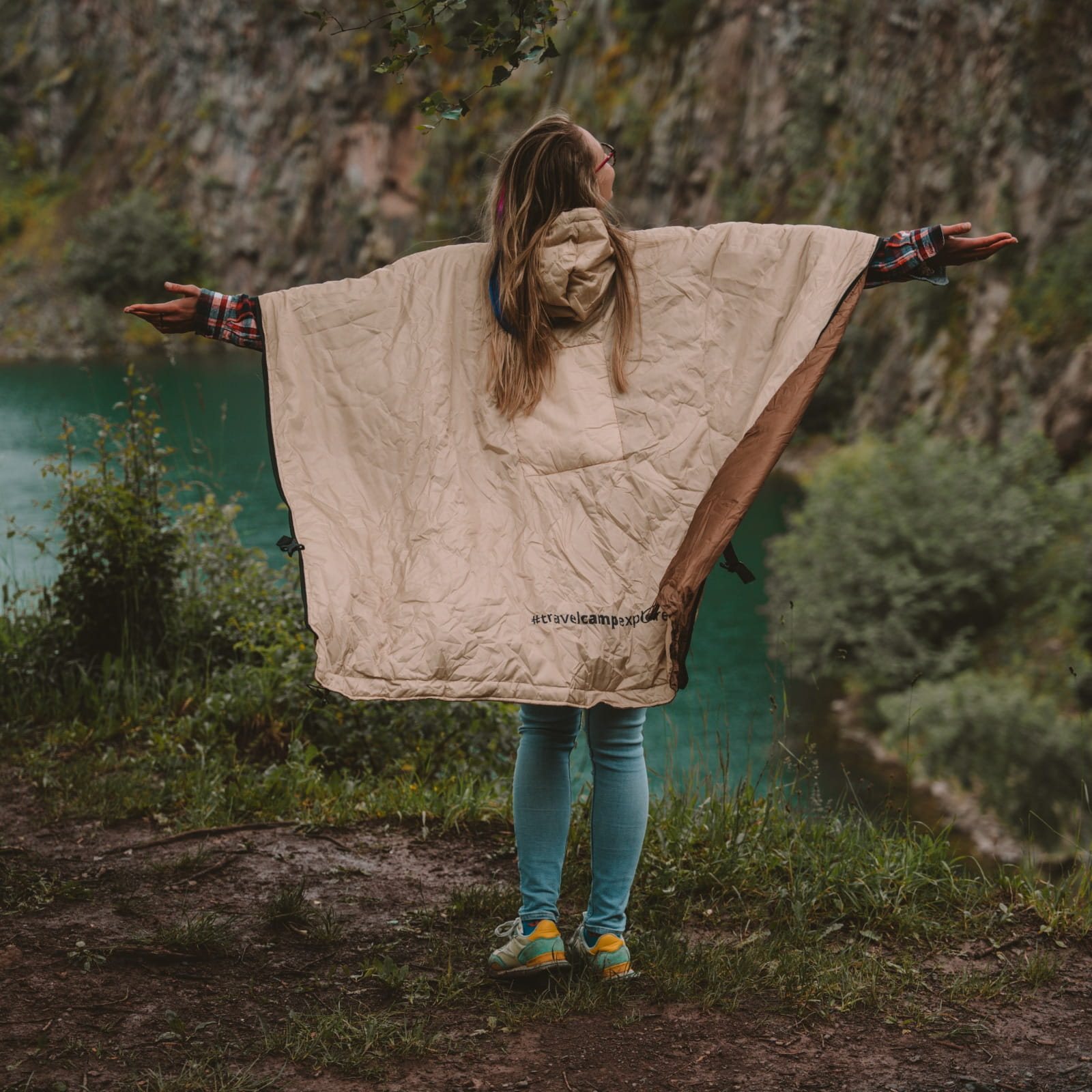 To nie tylko ponczo – to też śpiwór i koc w jednym. Z jednej strony masz zamknięcie, z drugiej zamek, dzięki czemu w kilka sekund zmienisz ponczo w ciepłe miejsce do odpoczynku. Super opcja na wyprawy z nocowaniem, kiedy nie chcesz targać dodatkowego sprzętu.