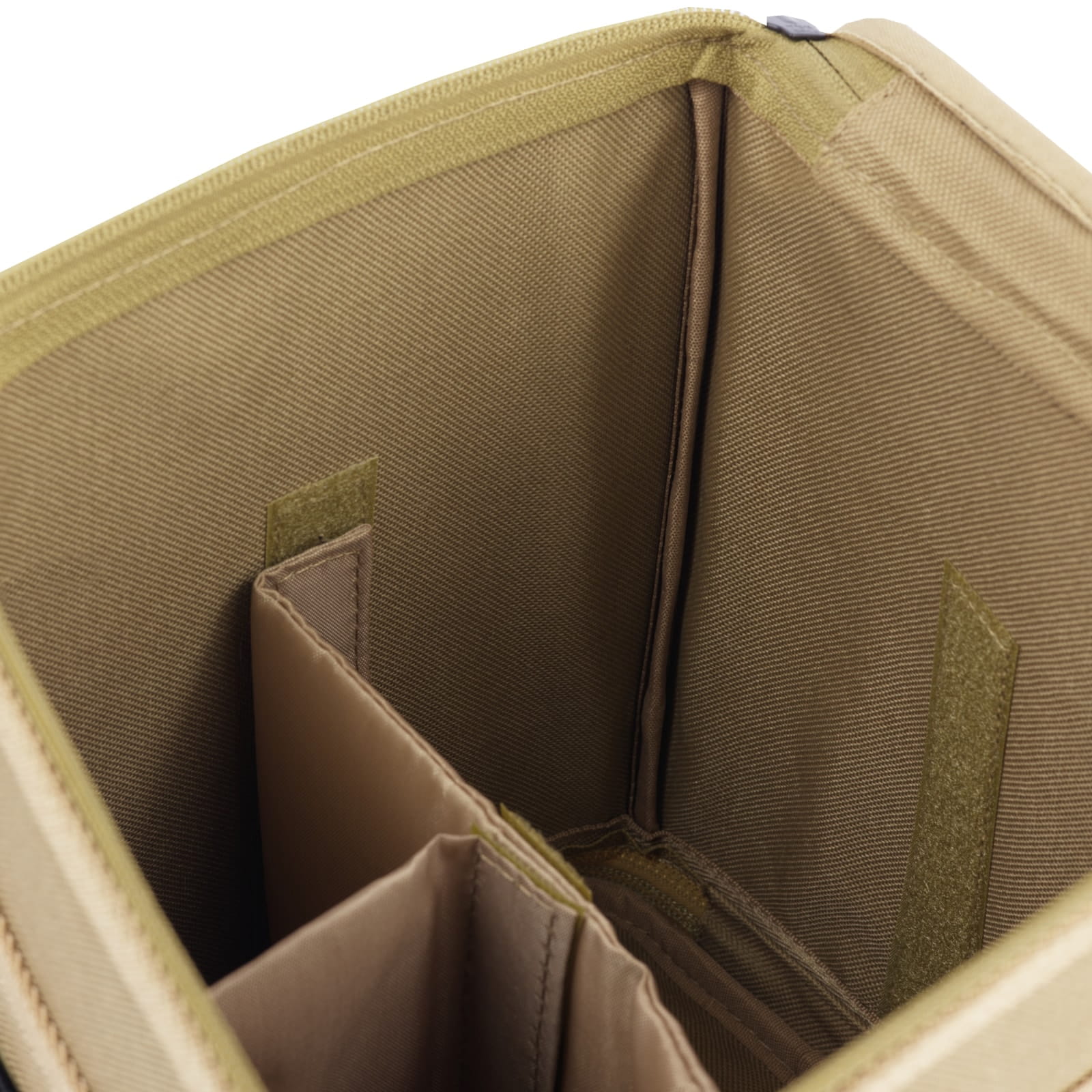 W środku torba ma dwie regulowane przegrody na rzepach. Torba posiada paski PALS oraz kieszonki umieszczone na dwóch bokach torby. Pozwala to na przytroczenie dodatkowych saszetek, wieszaków na akcesoria lub po prostu zawieszenie różnych przedmiotów. W zależności od pakowanego ładunku możemy odpowiednio dostosować torbę do swoich potrzeb.