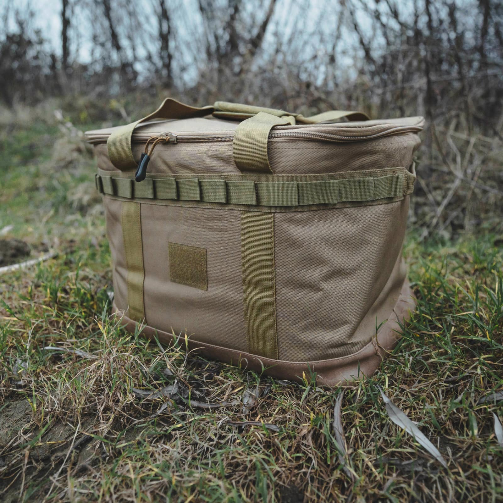 Torba świetnie sprawdza się jako "kosz" z rzeczami piknikowymi. Wrzucisz tam garnki, palnik, butlę gazową, talerze i sztućce. Kubki przytroczysz do pasków molle. Wszystko w jednym miejscu, do bagażnika i w drogę. Z bagażnika i na półkę. Czysto, schludnie i zawsze wszystko w jednym miejscu.