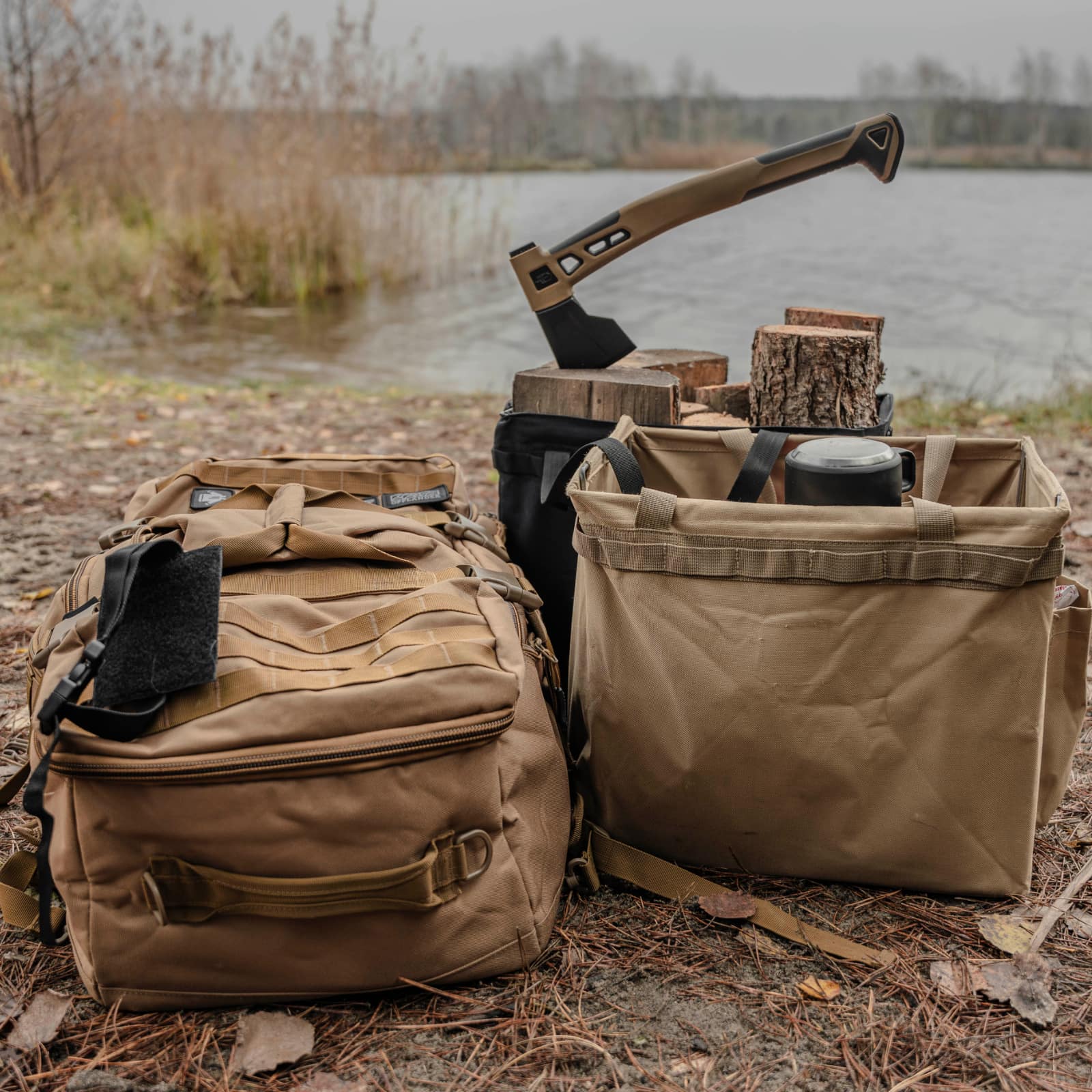 Torba świetnie sprawdza się jako "kosz" z rzeczami piknikowymi. Włożysz do niej talerze, sztućce, termosy, kubki przytroczysz do pasków molle. W innym scenariuszu, wrzucisz do niej zakupy lub brudne kalosze czy może drewno na opał.