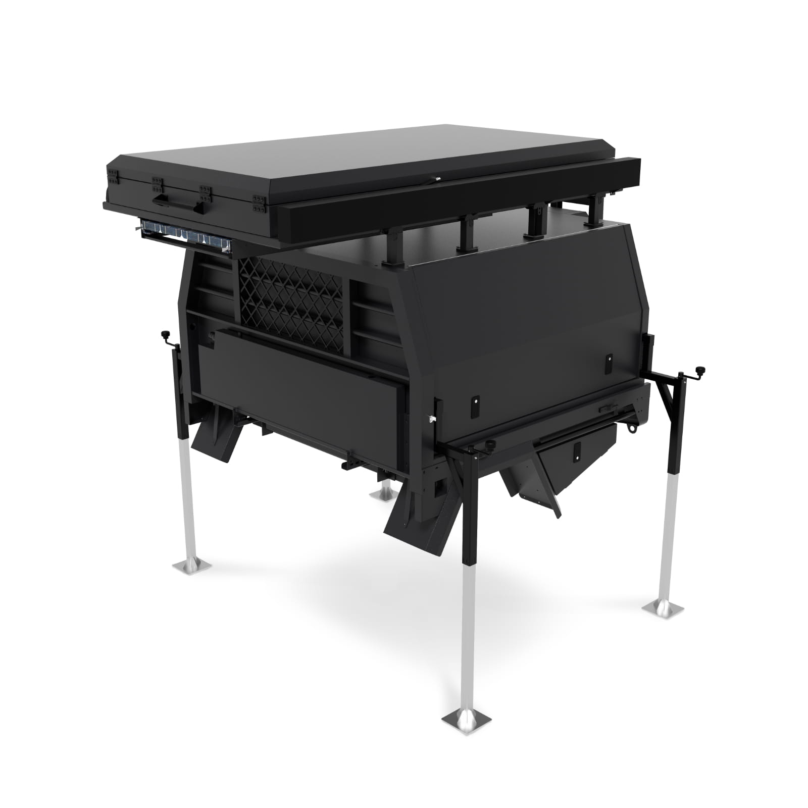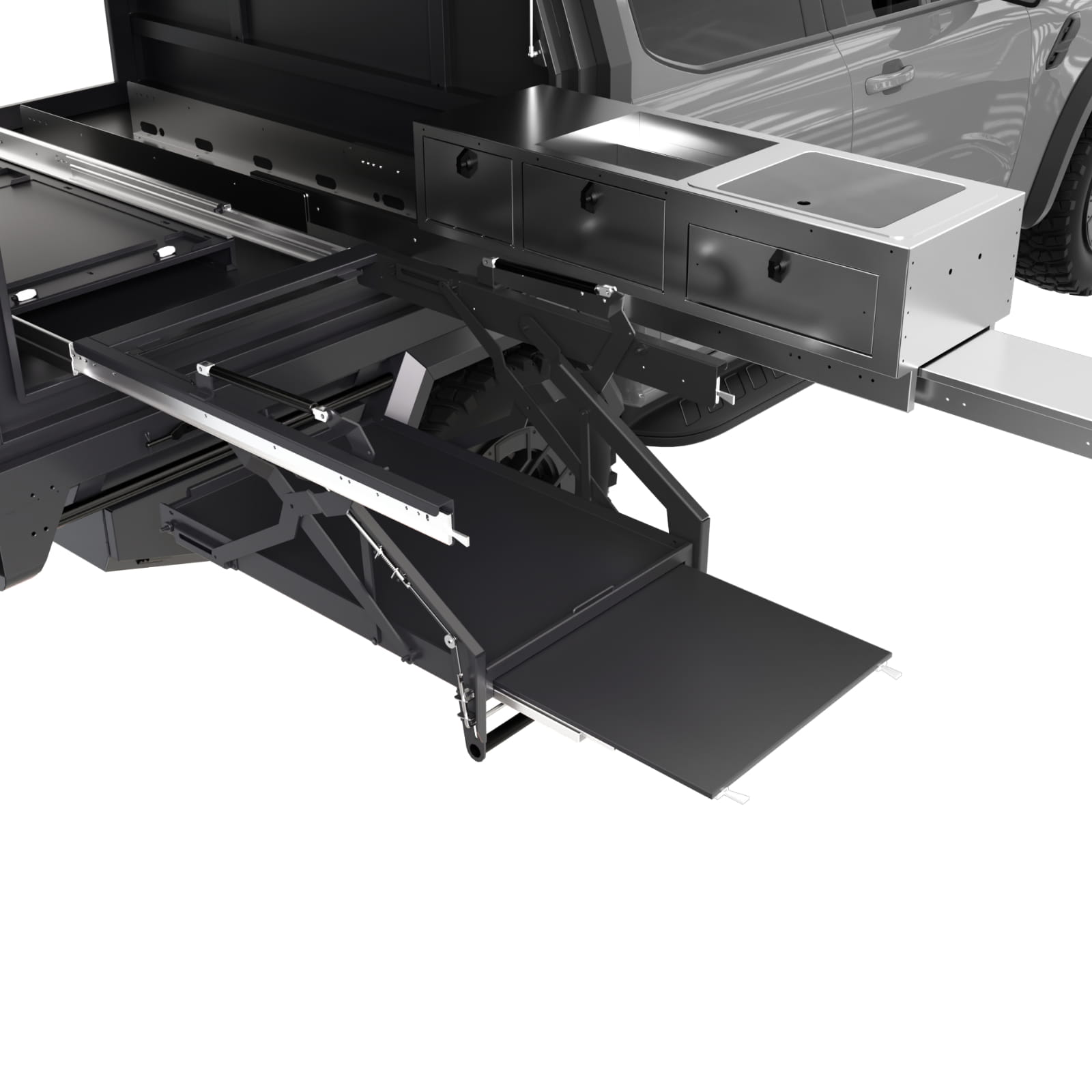 Zabudowa Darbat jest w pełni kompatybilna z większością pick-upów z platformą płaską i stanowi solidną bazę do dalszej konfiguracji – można ją rozbudować o dodatkowe systemy wodne, energetyczne, schowki czy kuchnię modułową.