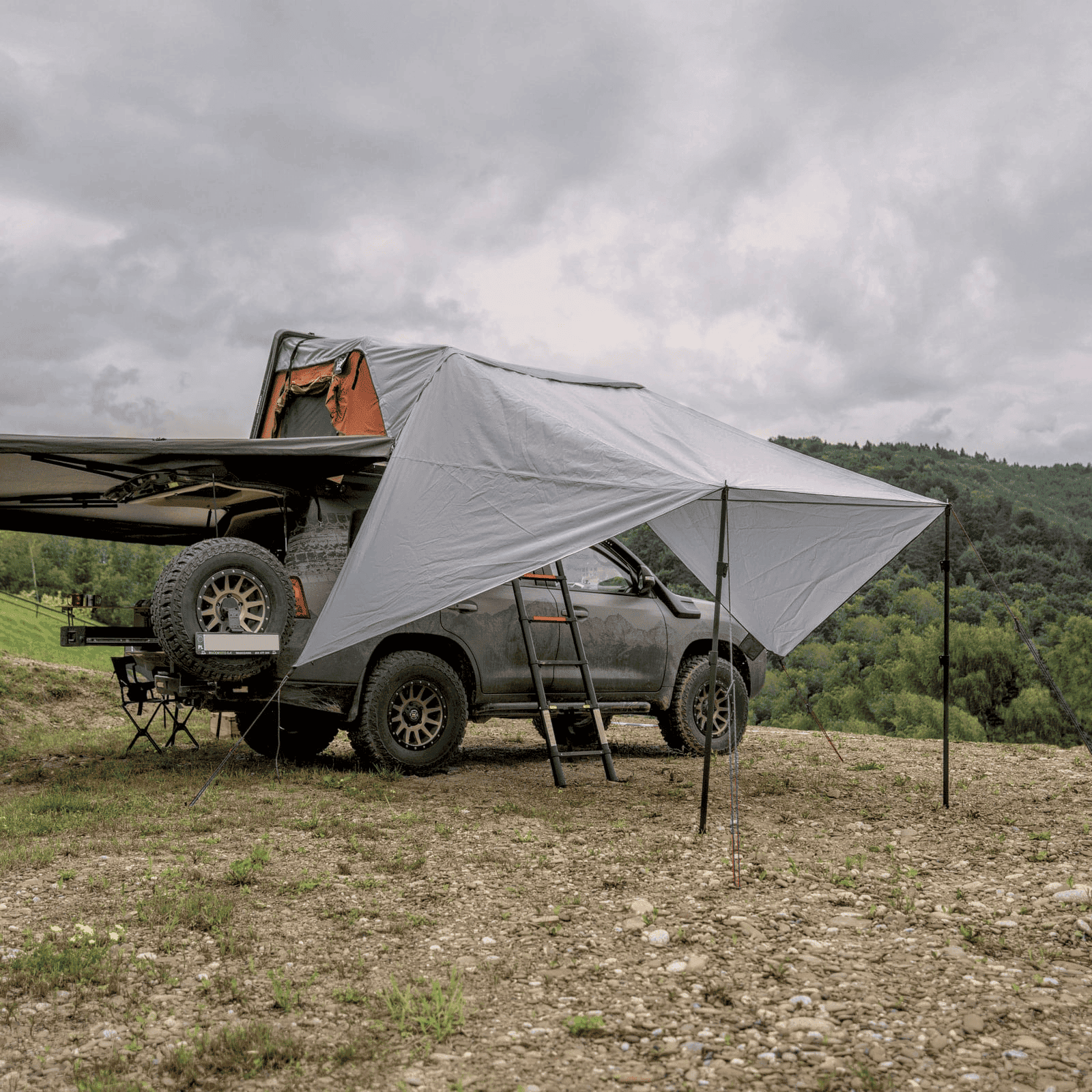 Zadaszenie do namiotu dachowego FOLD 4 marki OFFLANDER to świetny sposób na zagospodarowanie przestrzeni wokół samochodu. Solidna, wodoodporna tkanina zapewni Ci kawałek cienia w upalne popołudnie, a także suchą powierzchnię, gdzie w deszczowy ranek przygotujesz śniadanie. Możesz dokładnie dopasować je do swoich potrzeb. Dzięki teleskopowym słupkom możesz łatwo wyregulować wysokość zadaszenia tak, aby zapewnić sobie 100% komfortu. Aluminiowe słupki są lekkie, a ich regulacja bardzo łatwa.