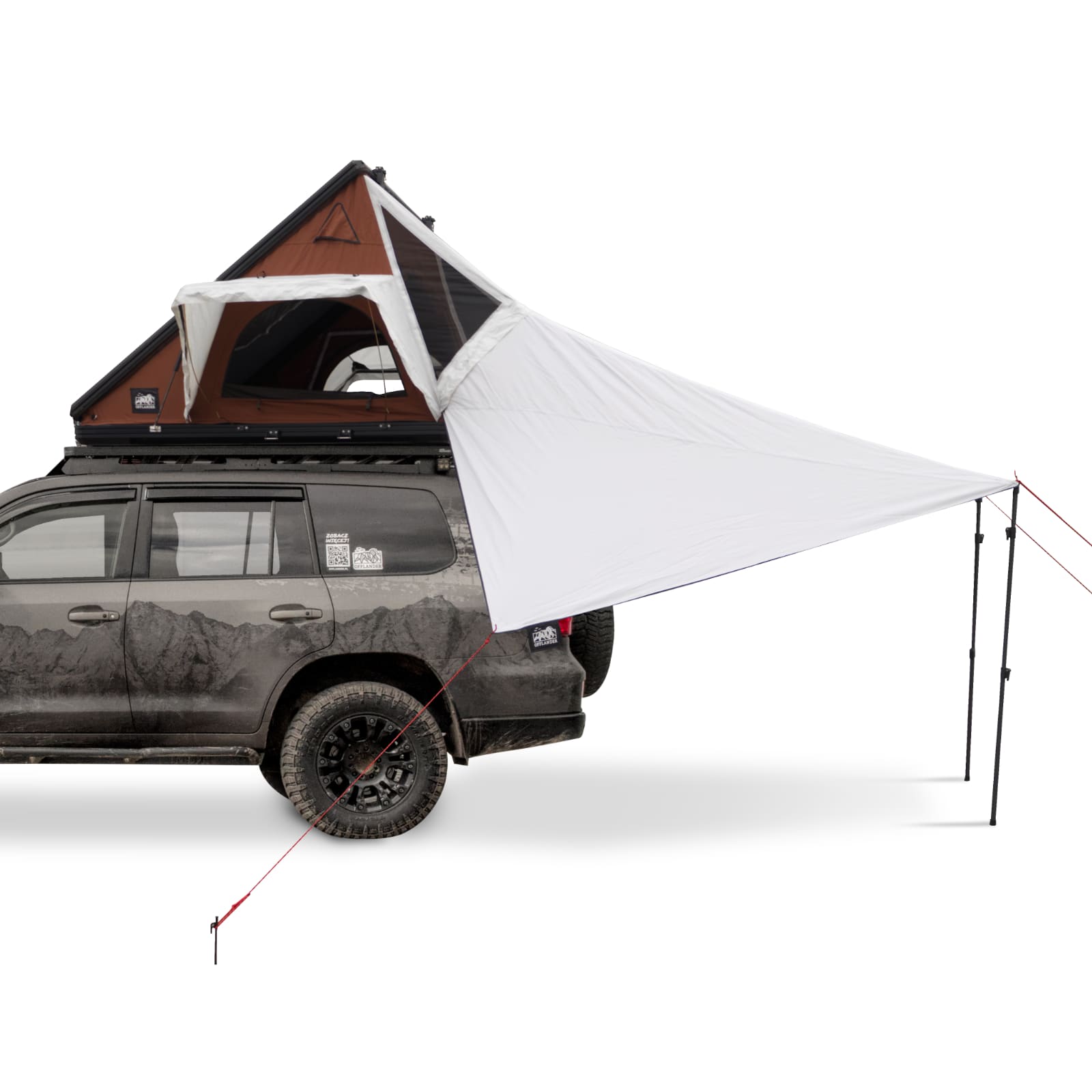 Zadaszenie do namiotu dachowego MANAM XL marki OFFLANDER to świetny sposób na zagospodarowanie przestrzeni wokół samochodu. Solidna, wodoodporna tkanina zapewni Ci kawałek cienia w upalne popołudnie, a także suchą powierzchnię, gdzie w deszczowy ranek przygotujesz śniadanie. Możesz dokładnie dopasować je do swoich potrzeb. Dzięki teleskopowym słupkom możesz łatwo wyregulować wysokość zadaszenia tak, aby zapewnić sobie 100% komfortu. Aluminiowe słupki są lekkie, a ich regulacja bardzo łatwa.