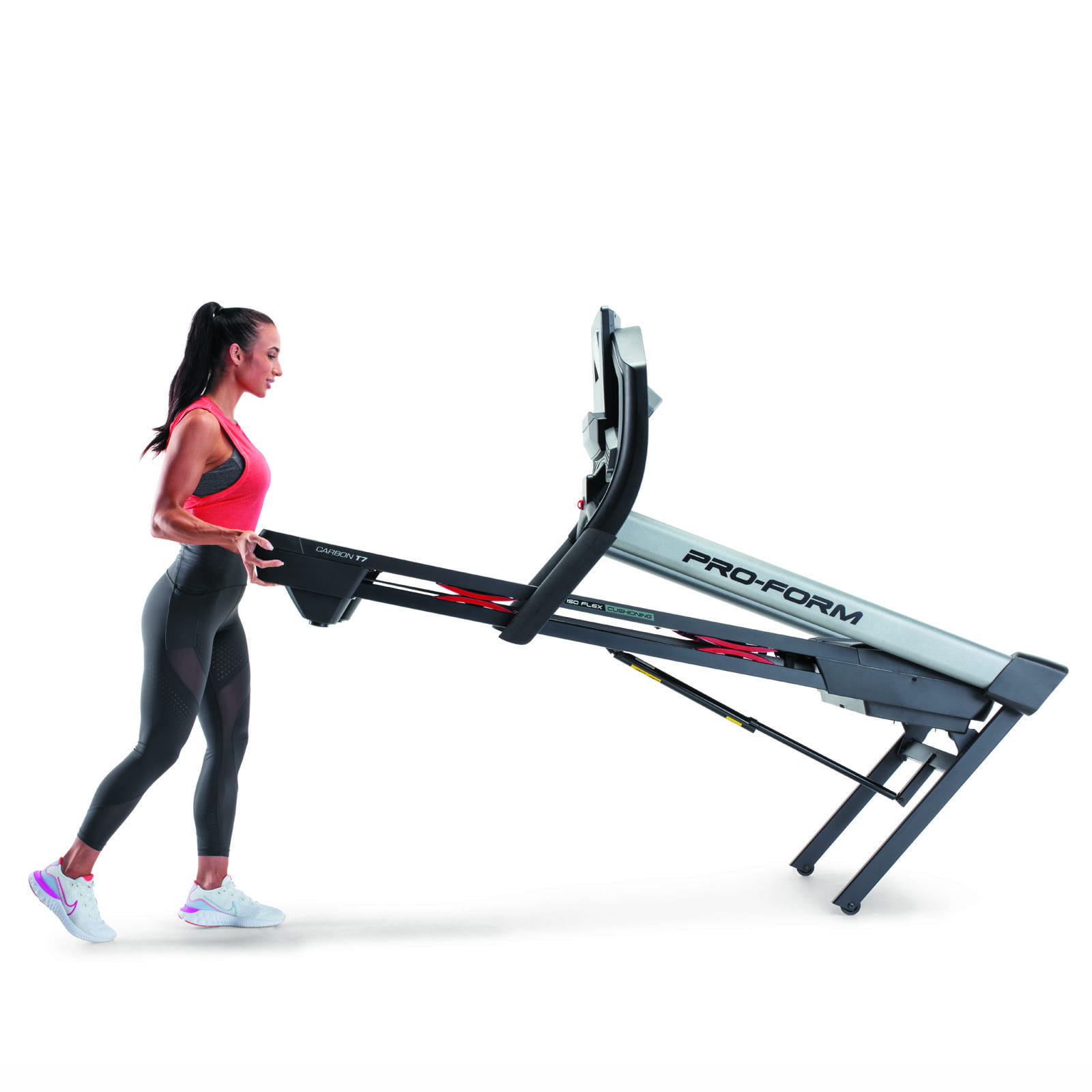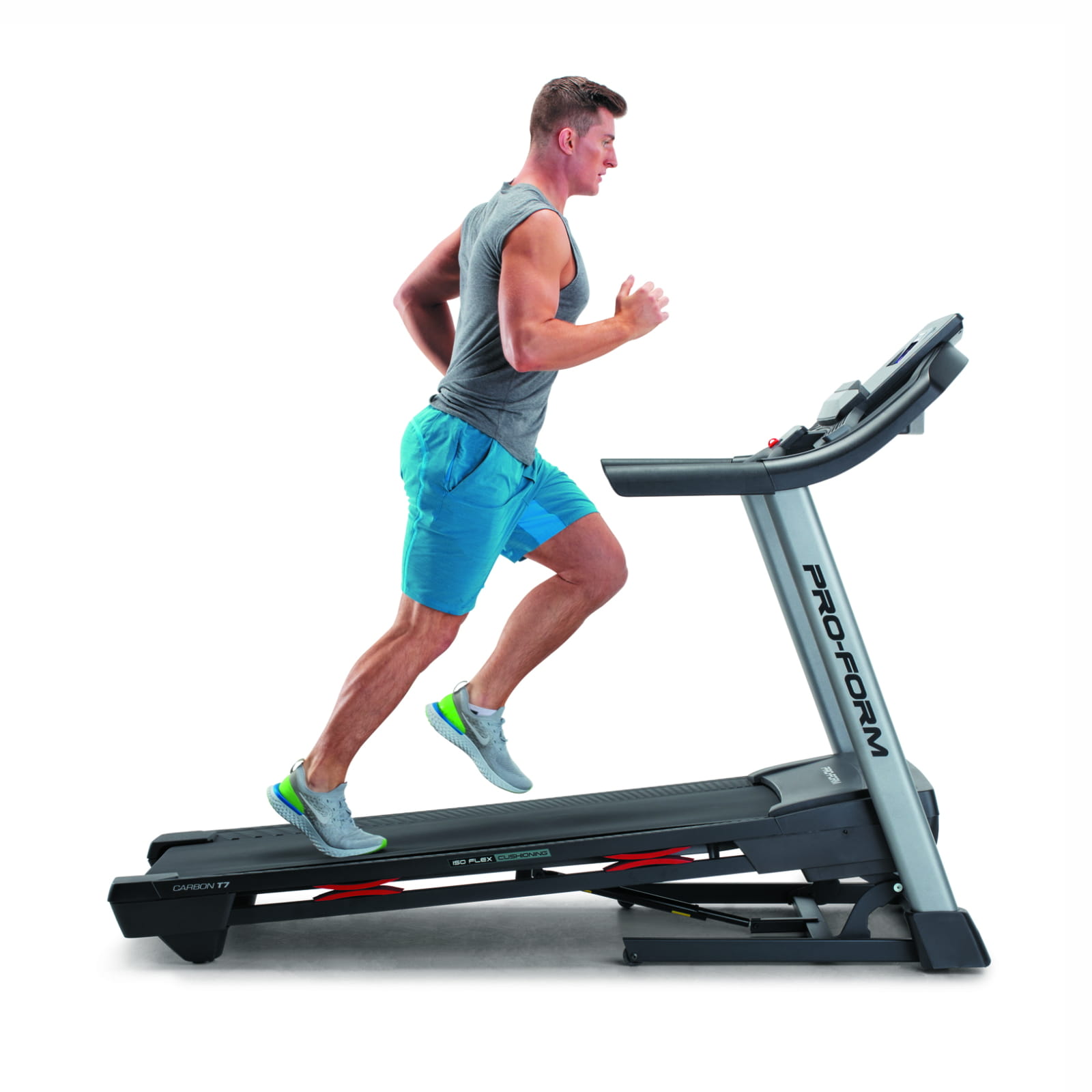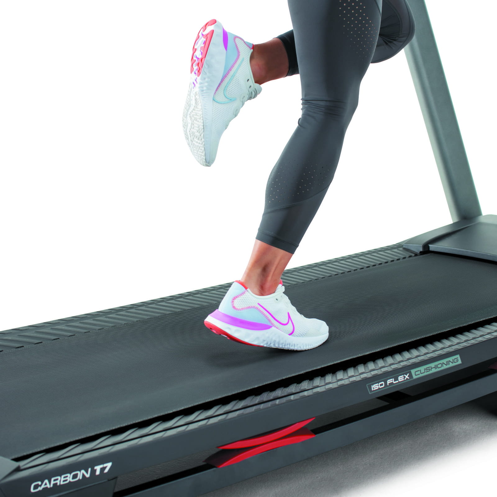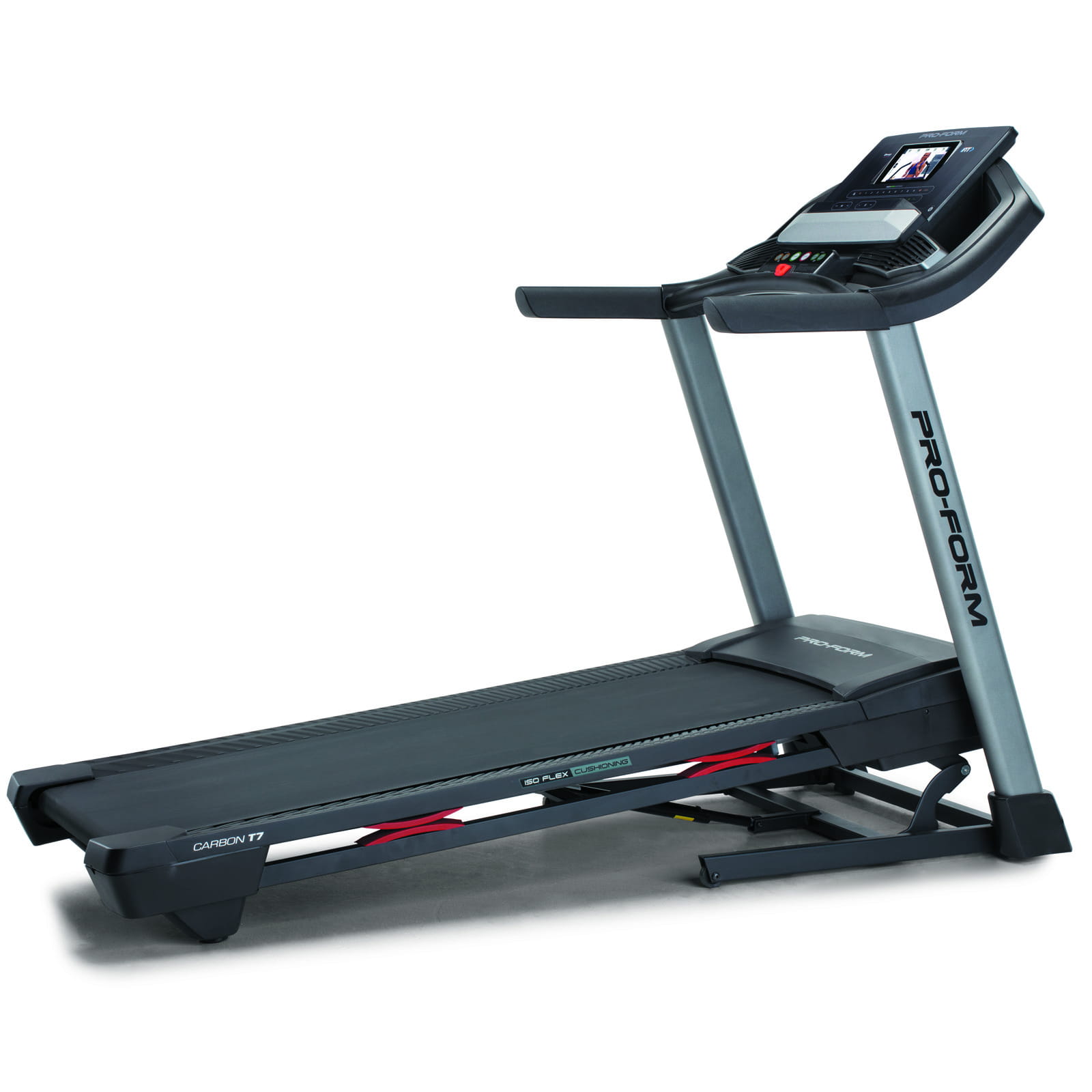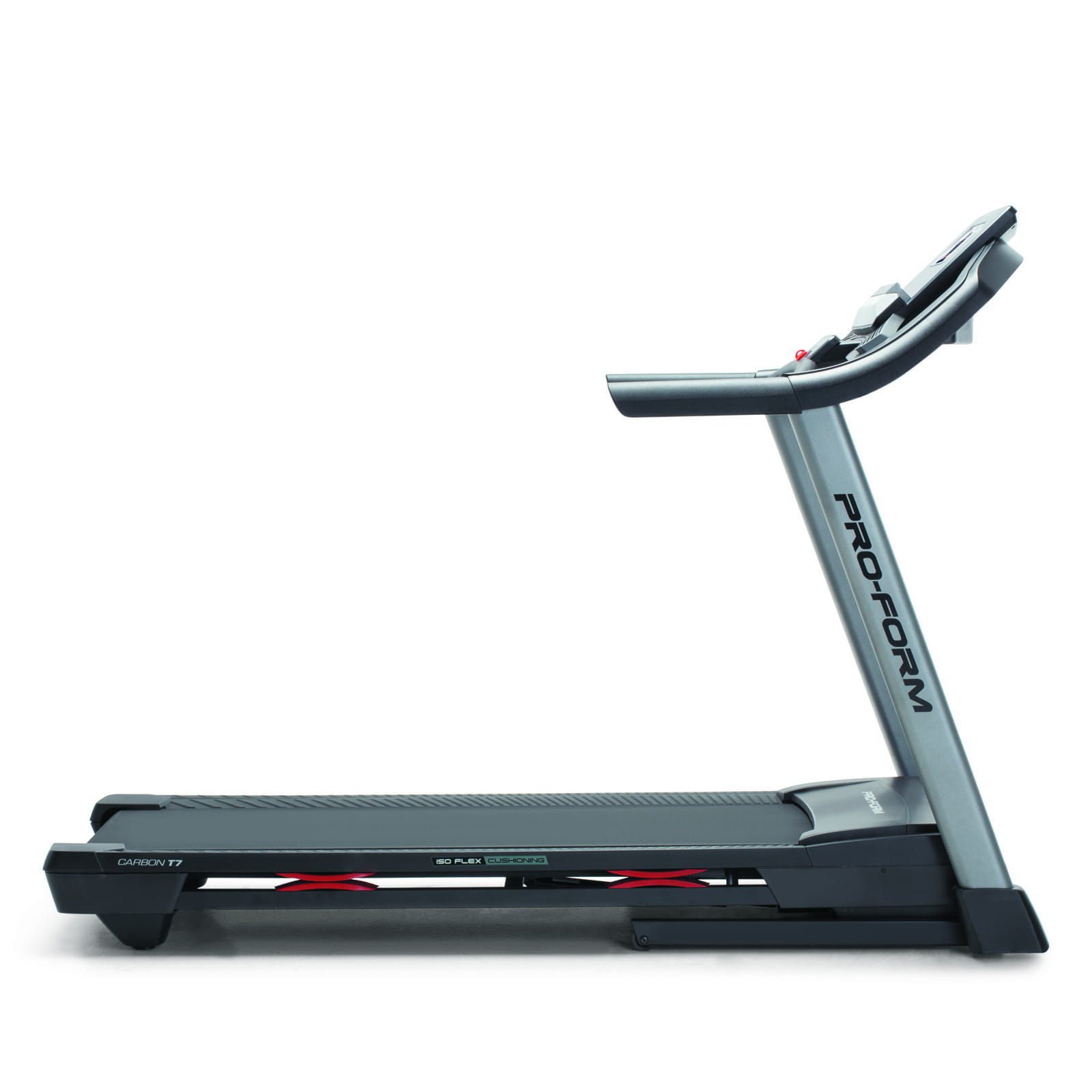 SYSTEM AMORTYZACJI BIEŻNI ISO FLEX: Zaawansowany system amortyzacji bieżni ProForm. Zapewnia amortyzację od pasa bieżni dla komfortu stawów.