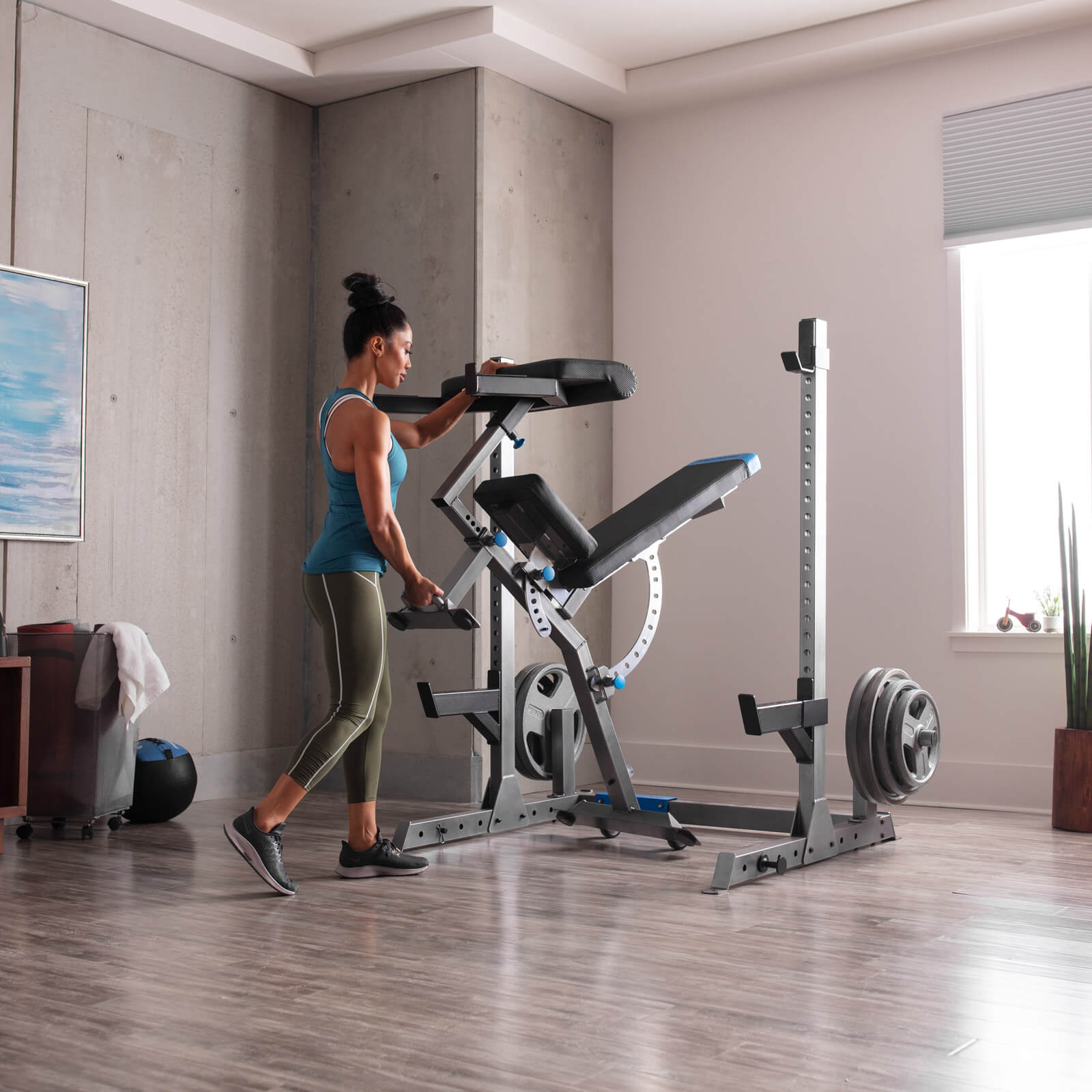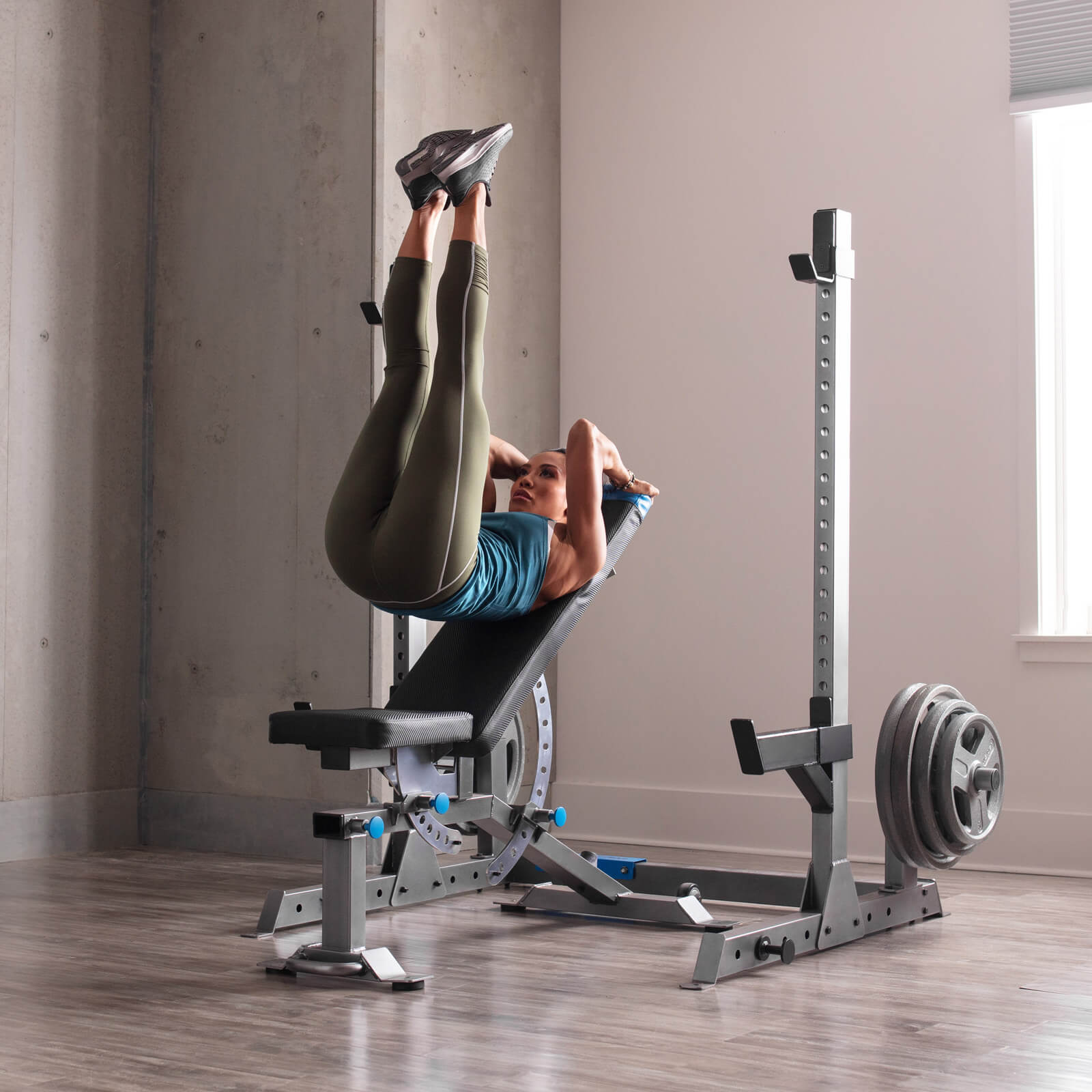 Ławka olimpijska Carbon Strength marki Proform pomoże Ci wykonać nawet najbardziej zaawansowany trening siłowy w Twoim własnym domu. Oparcie i siedzenie są regulowane, możesz ustawić je łącznie w 66 konfiguracjach. Dzięki temu komfortowo i efektywnie możesz pracować nad wybranymi partiami mięśni. Wystarczy ławka, sztanga i hantle, abyś mógł zwiększyć swoją siłę, wytrzymałość i wyrzeźbić sylwetkę.