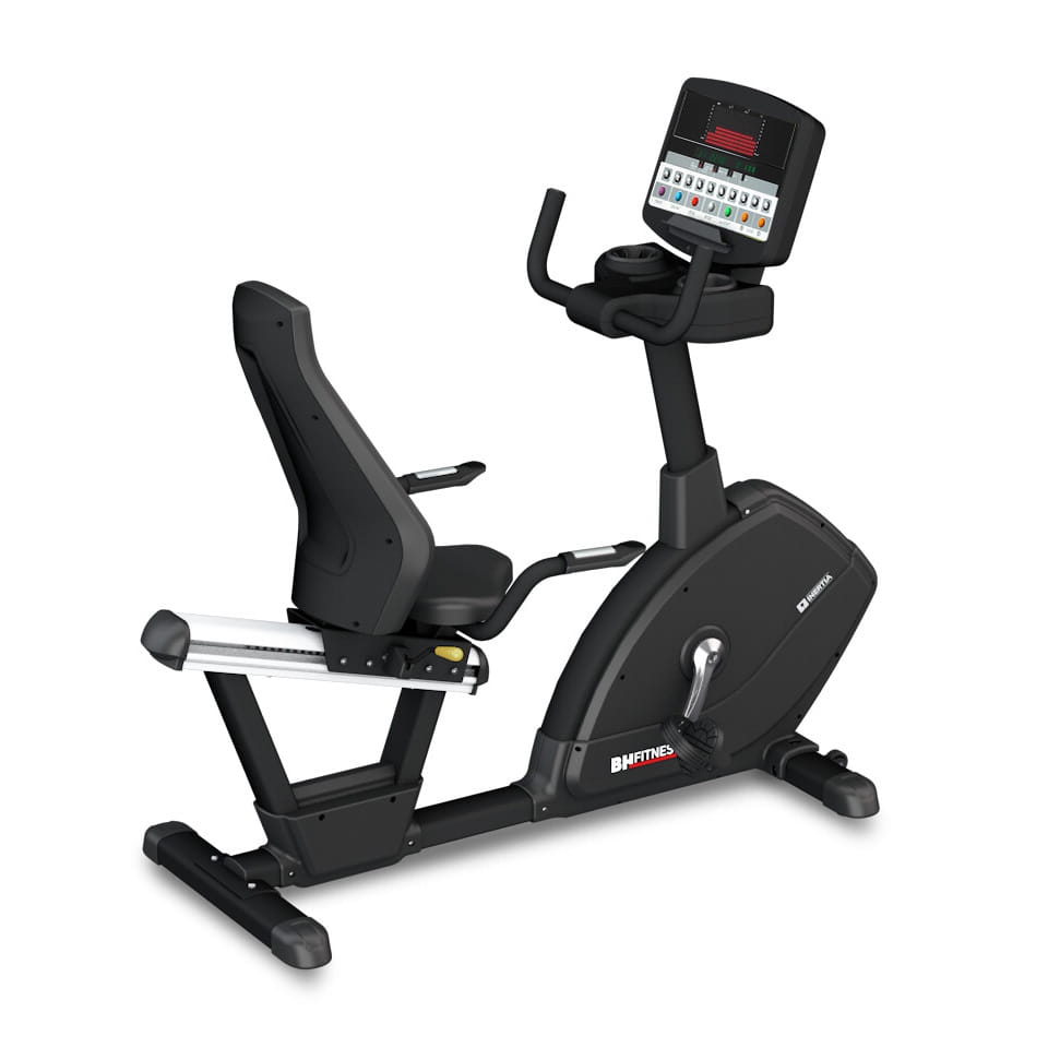 Profesjonalny stacjonarny rower poziomy BH Fitness reprezentujący ekskluzywną linię sprzętu Inertia przeznaczonego do zastosowań komercyjnych w siłowniach, klubach i innych obiektach użytku publicznego. Pozwala ćwiczyć w bezpiecznej dla kręgosłupa pozycji półleżącej. Dzięki otwartej ramie z niskim wejściem swobodnie mogą z niego korzystać osoby po urazach oraz seniorzy.