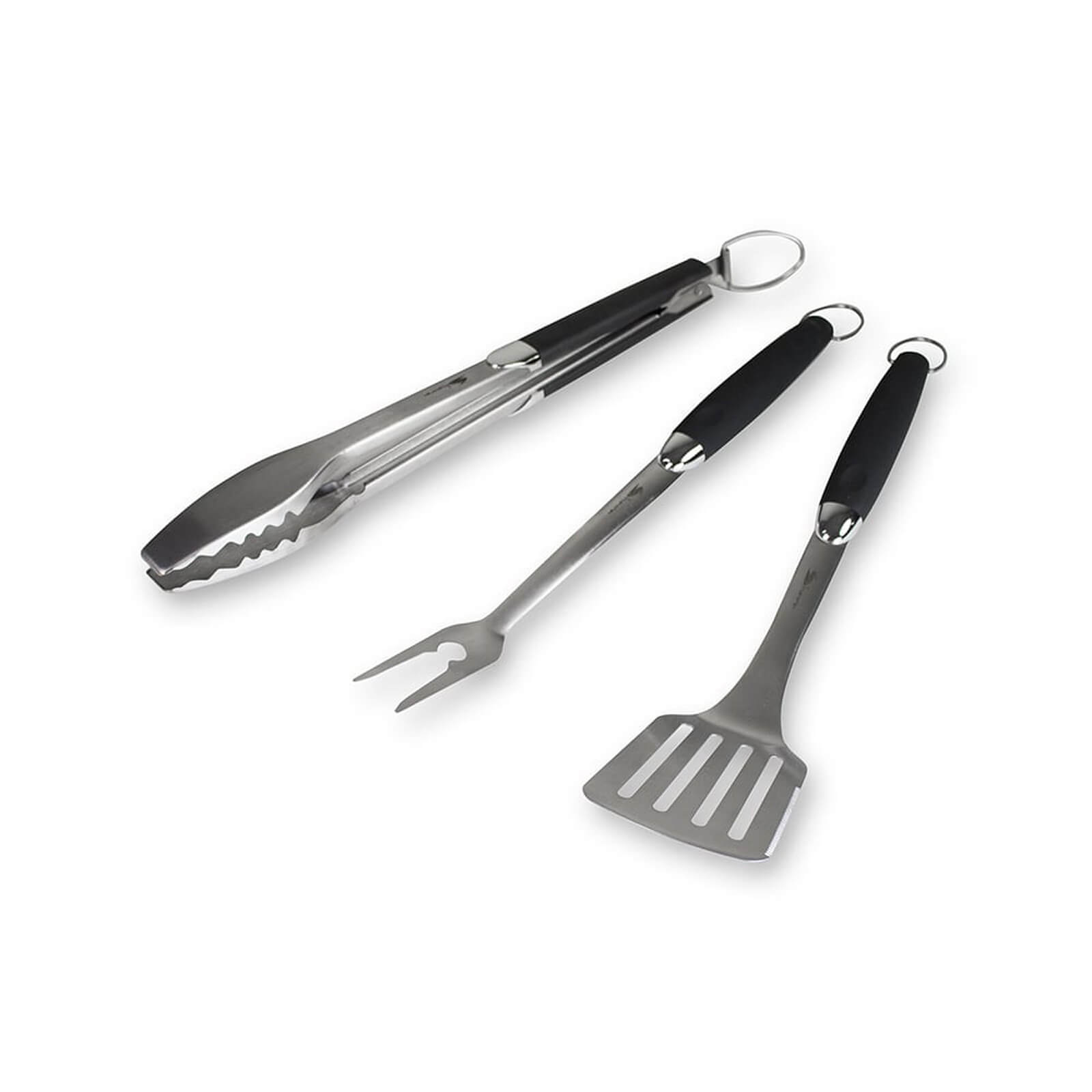 Uzupełnij swój domowy zestaw do grillowania o trzyczęściowy zestaw akcesoriów do grillowania marki Sahara. Zawiera on szczypce, widelec i łopatkę. Dzięki nim wygodnie przygotujesz dowolne danie z grilla. Wysokiej jakości zestaw został wykonany ze stali nierdzewnej. Pokryte gumą rączki sprawiają, że akcesoria nie ślizgają się w rękach podczas grillowania.