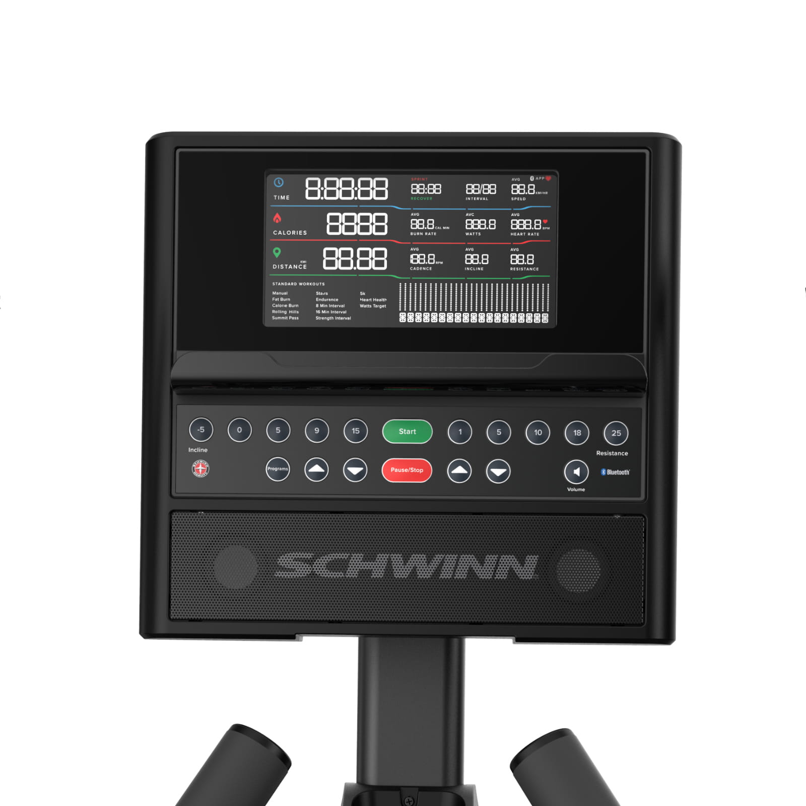 Kompaktowy Orbitrek Programowany Schwinn 590E to najnowszy i najlepiej dostosowany do użytkownika model marki Schwinn. Projektanci połączyli kompaktowy rozmiar ze wszystkimi cechami najlepszego roweru eliptycznego. 590E to aż 51 cm długości kroku, dwustopniowa, elektroniczna regulacja nachylenia, solidne, podwójne rolki, kompatybilność z aplikacjami, 25 poziomów oporu magnetycznego, oraz elegancki i stylowy wygląd.