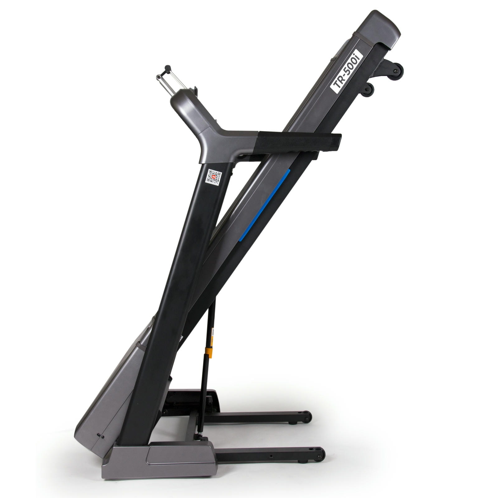 Elite TR-500i została wyposażona w system amortyzacji, który skutecznie redukuje wstrząsy i chroni stawy przed przeciążeniem. Solidna rama gwarantuje bezpieczeństwo nawet przy maksymalnym obciążeniu 150 kg. Po zakończeniu treningu bieżnię można łatwo złożyć.