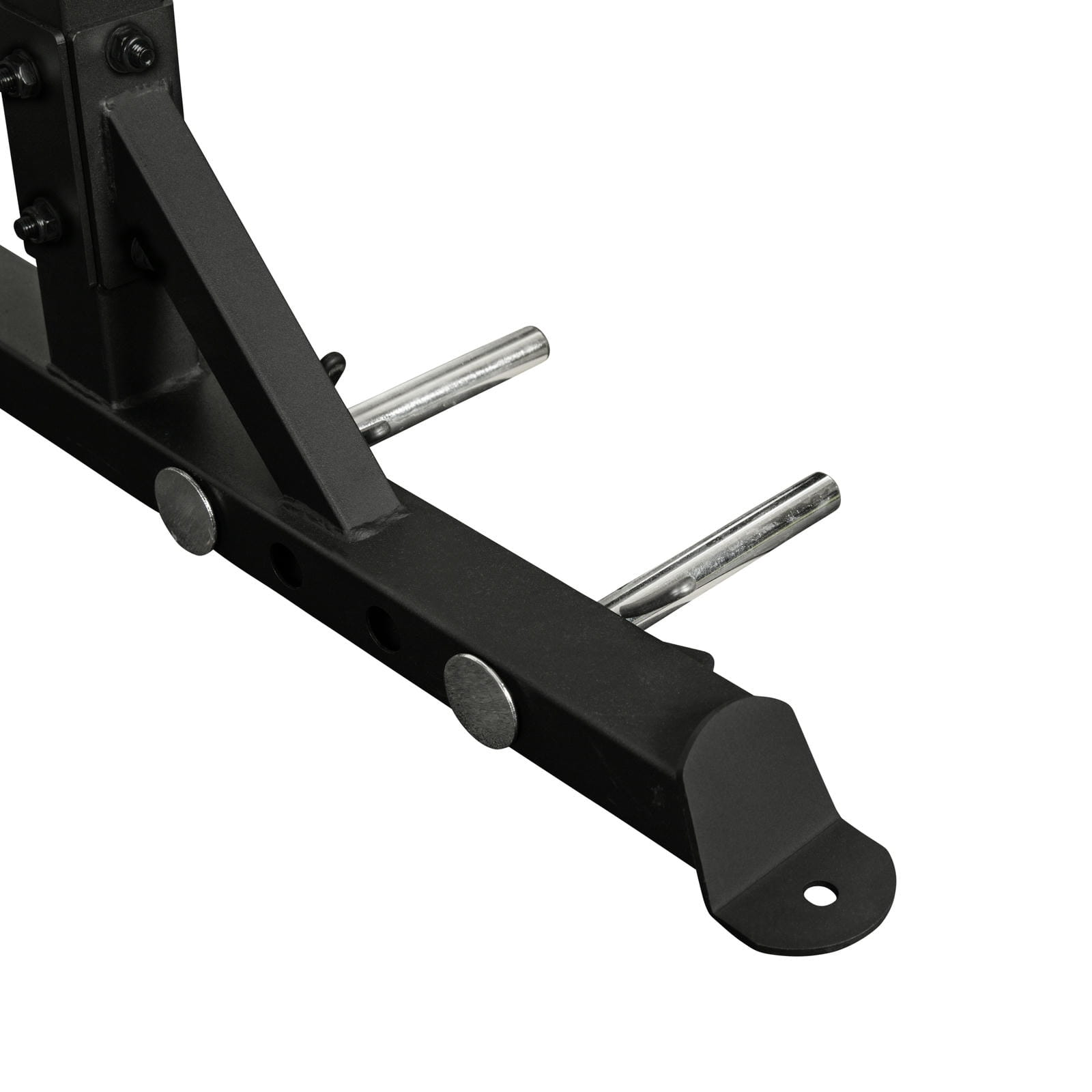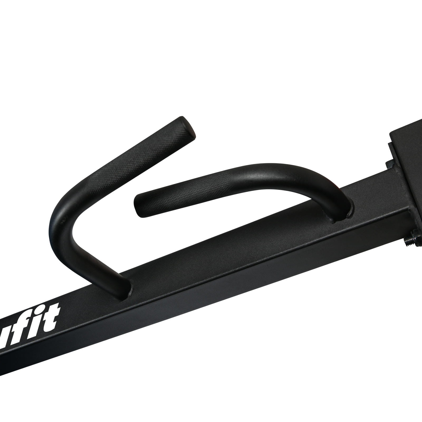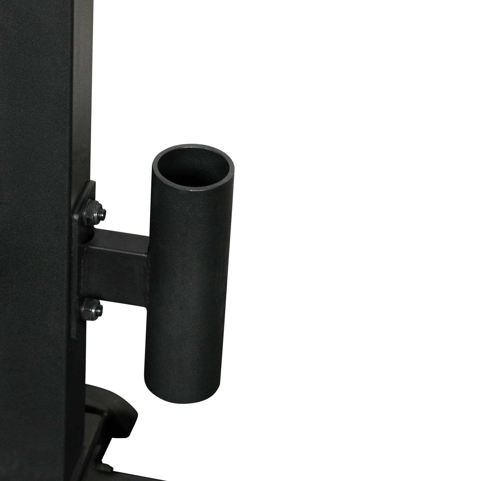 Model HR100 został wyposażony w drążek do podciągania z wieloma wariantami chwytu, który umożliwia trening górnych partii ciała. Po bokach znajdują się uchwyty na talerze olimpijskie, co pozwala utrzymać porządek w strefie treningowej i szybciej zmieniać obciążenie. Dolne belki konstrukcji umożliwiają mocowanie gum oporowych, co zwiększa możliwości treningowe i urozmaica ćwiczenia.