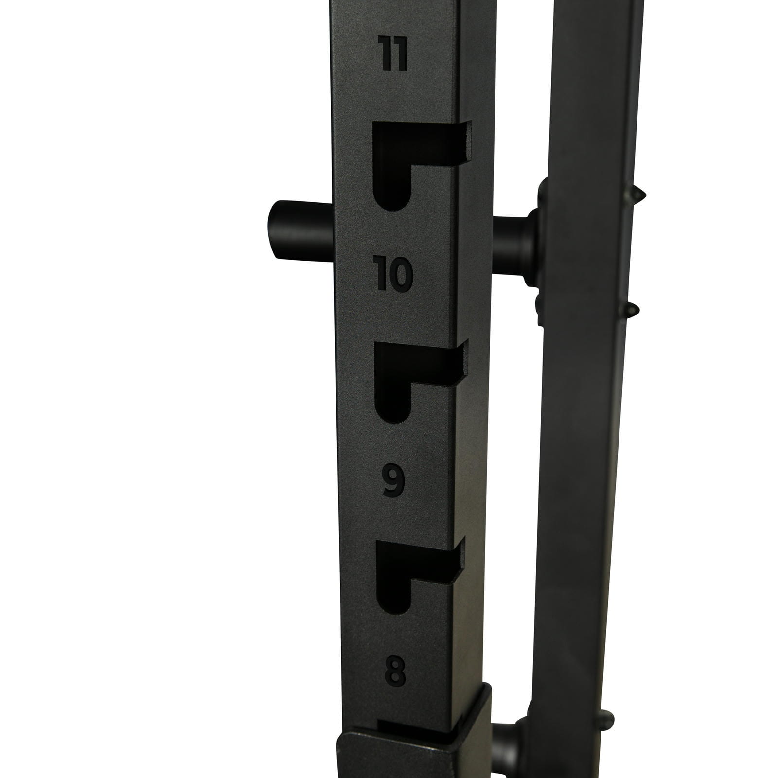 Klatka została wykonana z wytrzymałych profili stalowych, które zapewniają maksymalną stabilność podczas ćwiczeń. Solidna podstawa i możliwość przymocowania do podłoża gwarantują pewność przy pracy z dużym ciężarem. Ramiona asekuracyjne mają nośność do 350 kilogramów, a uchwyty typu J-hook do 250 kilogramów, co pozwala na bezpieczne wykonywanie intensywnych treningów.